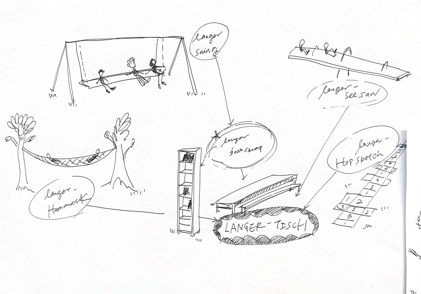 _A Langer Park poster campaign, which teases and illustrates potential additions to Langer Tisch – such as a Langer swing, a Langer hopscotch, a Langer hammock…