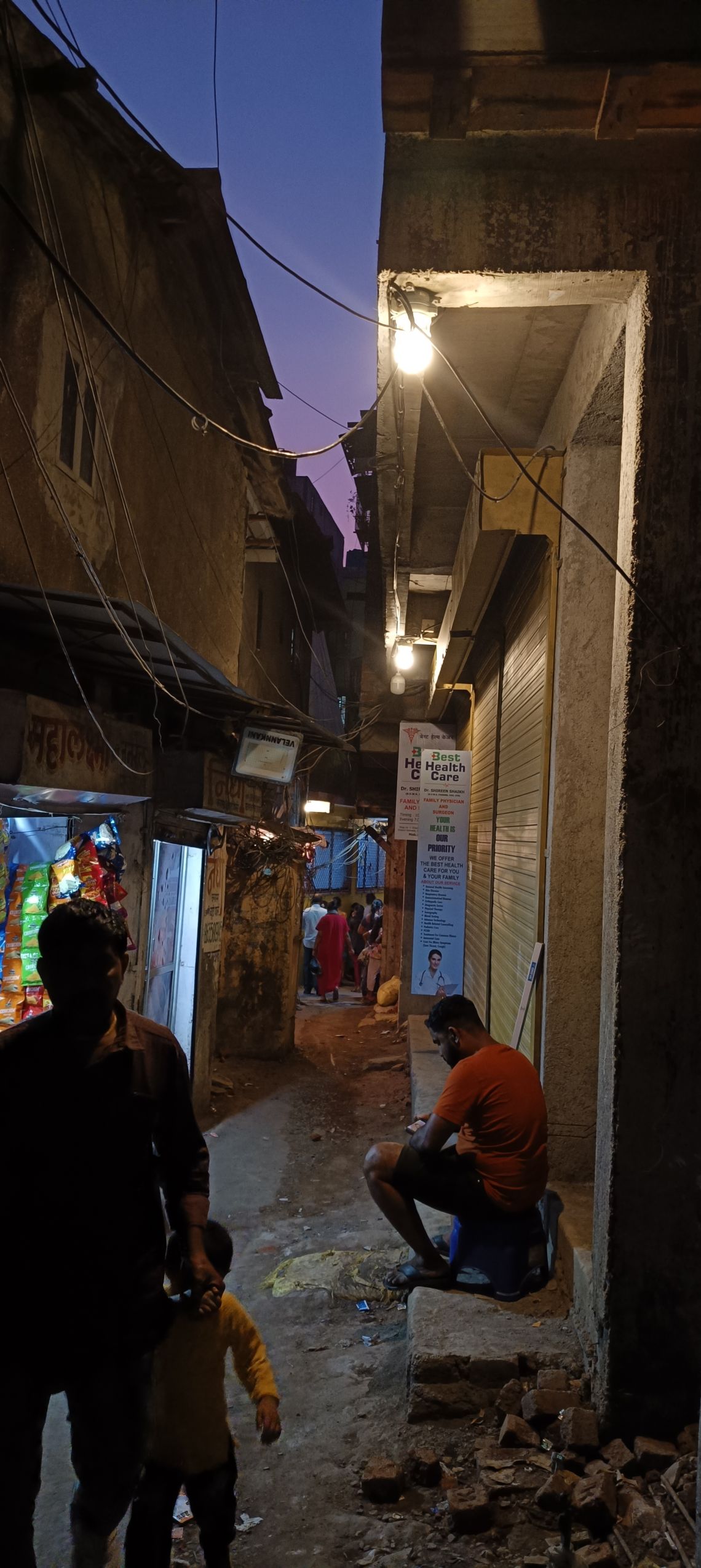 The first round of observations and discussions with the residents helped to identify and prioritise the street for the pilot lighting project - the Dutta Mandir street. It is one of the busiest streets in the neighbourhood, connecting people to the major roads with access to public transport. The chosen street became a testbed to prototype ideas and adapt existing technologies.