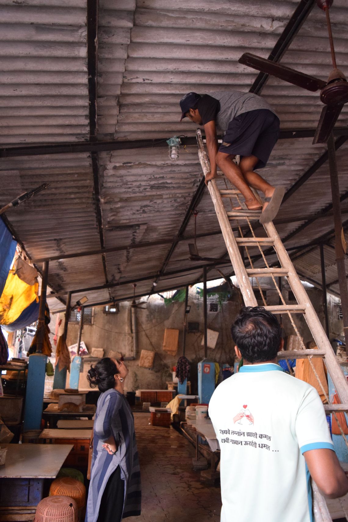 While solar-powered street lights were a goal at the start of the project, it soon became clear that we would have to separate the lighting aspect from how they would be electrified - solar or conventional electricity. The priority was always to address the need for light, and then attempt to connect them to solar panels. Students from NYUAD continued to work on bespoke solar panel setups for a low-rise high-density habitat like Koliwada. Unfortunately, the cost of customised solar panels far outweighs any benefits. The idea had to be shelved for a time when it may be more cost-efficient to execute. Voltmeters installed at the start showed how much electricity was being consumed. This became the baseline for further exploring the type and capacity of solar panels available in the market. The Jamat, with urbz and students from NYUAD, are now looking into government subsidies, manufacturers, and suitable locations to install the panels. Ways to manage the light infrastructure are also being assessed. We foresee a combination of automation, which already controls the switching on and off of lights, along with the human infrastructure that traditionally manages resources in the community.