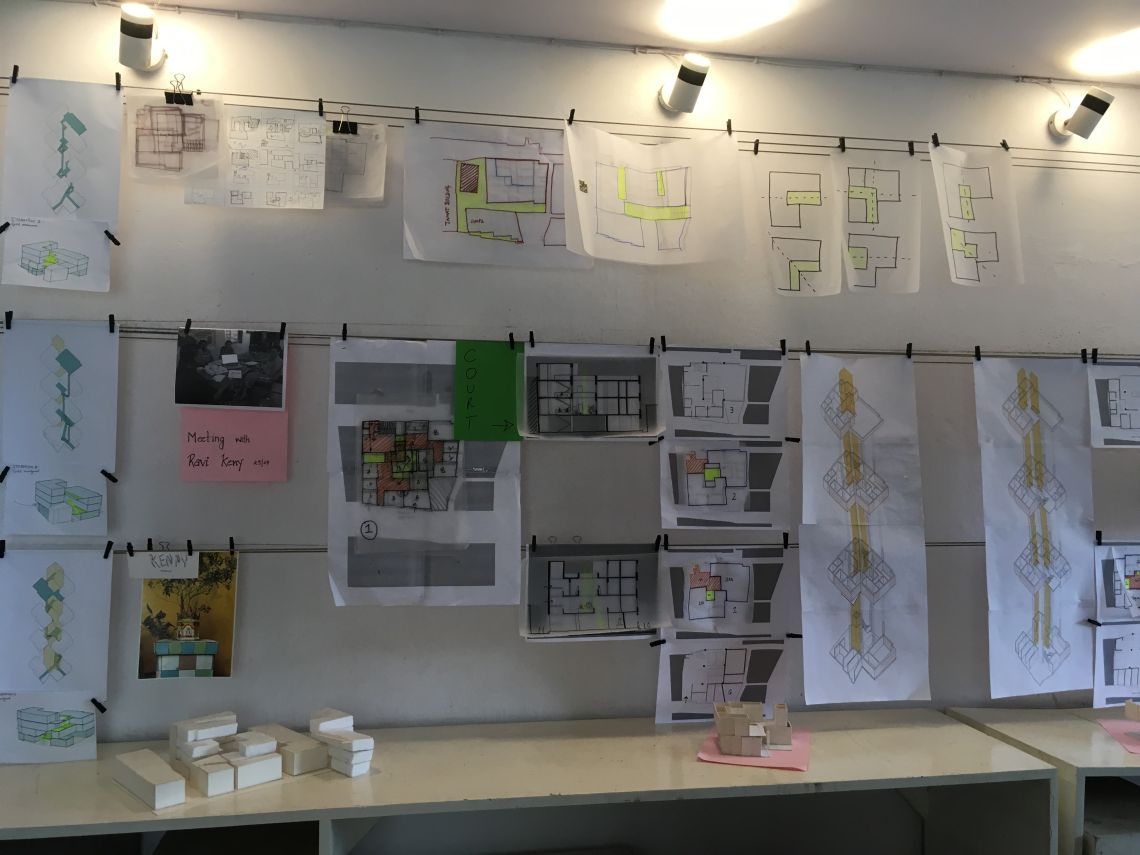 Each brother has three to four children, while not all of them reside here, it was important that they are provided for. Here is where inter-family dynamics decided the further appropriation of space within each brothers allocated area. After further discussions with Ravi Keny a design emerged such that each brother would have four independent studio apartments each with their own kitchen and toilet. Each studio apartment could then be handed over to one child and his family.