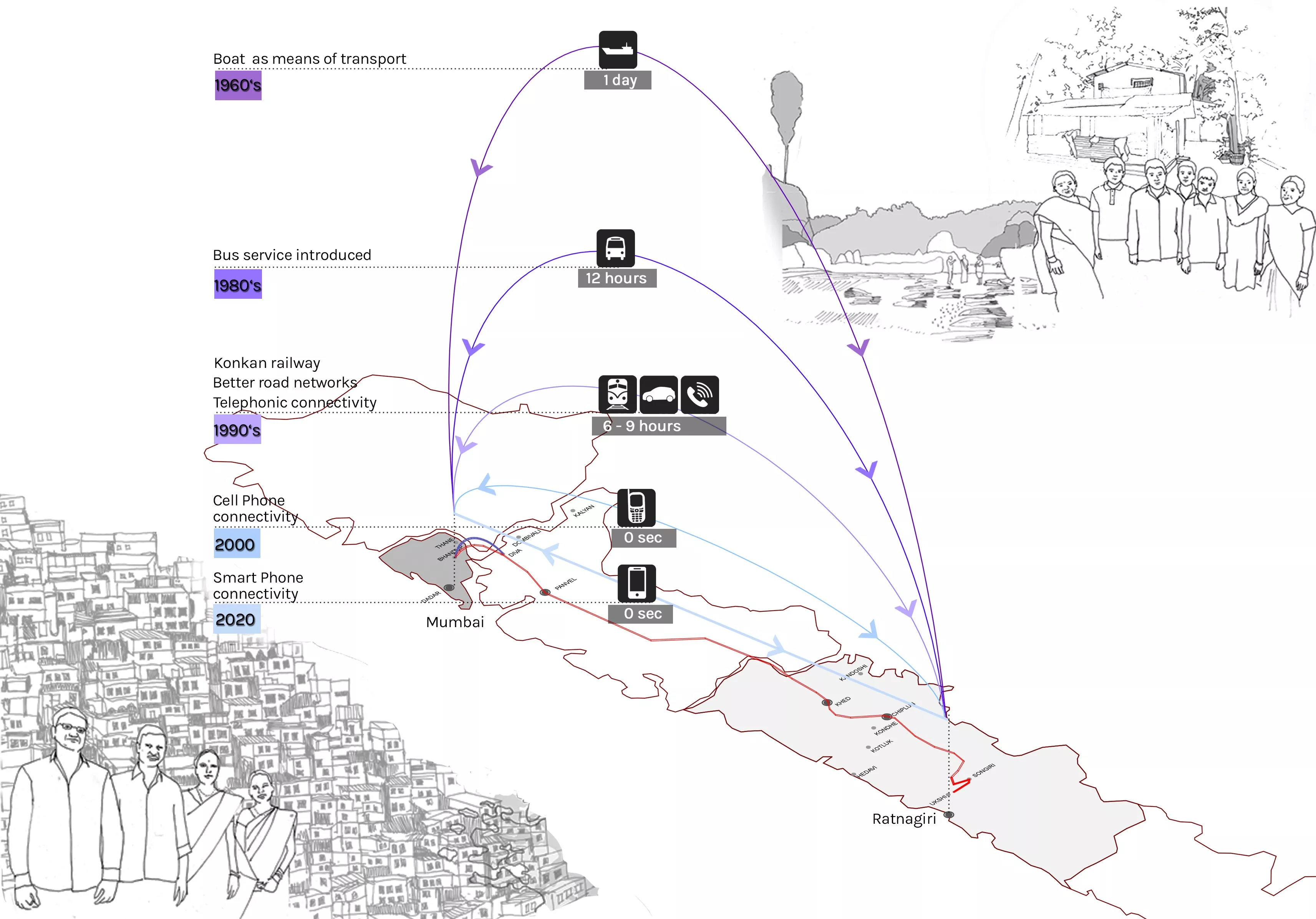 Even today, many residents in the old mill areas of the city and in large ‘homegrown’ pockets of Mumbai such as Bhandup, have Ratnagiri on their minds, and in their lives. They travel annually at the minimum and more often whenever they can. They keep in touch via relatives and neighbours. They send money and monitor how it is being used. They stay connected via mobiles and smart phones whenever the network allows it.
