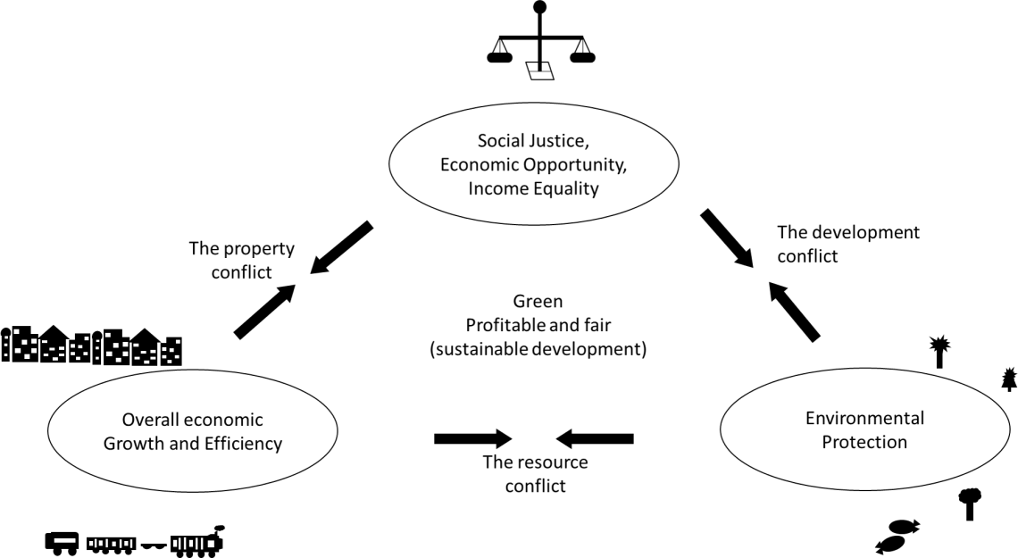 The Comunidade system should be recognised as a local regulatory body that regulates activities and the land use of the Comunidade land “by taking into consideration the existing economic, environmental and social conditions and the tendencies of” (DA SILVA, 2018) the Comunidade land located in a particular zone. It could follow The Planner’s Triangle to deduce the land use of the Comunidade land (DA SILVA, 2018).  That is, “when referring to the substantive goals of planning one usually finds that planners seek to reconcile three, often conflicting, interests: ‘to ‘grow’ the economy, distribute the growth fairly and in the process not degrade the ecosystem’” (Campbell 2016).