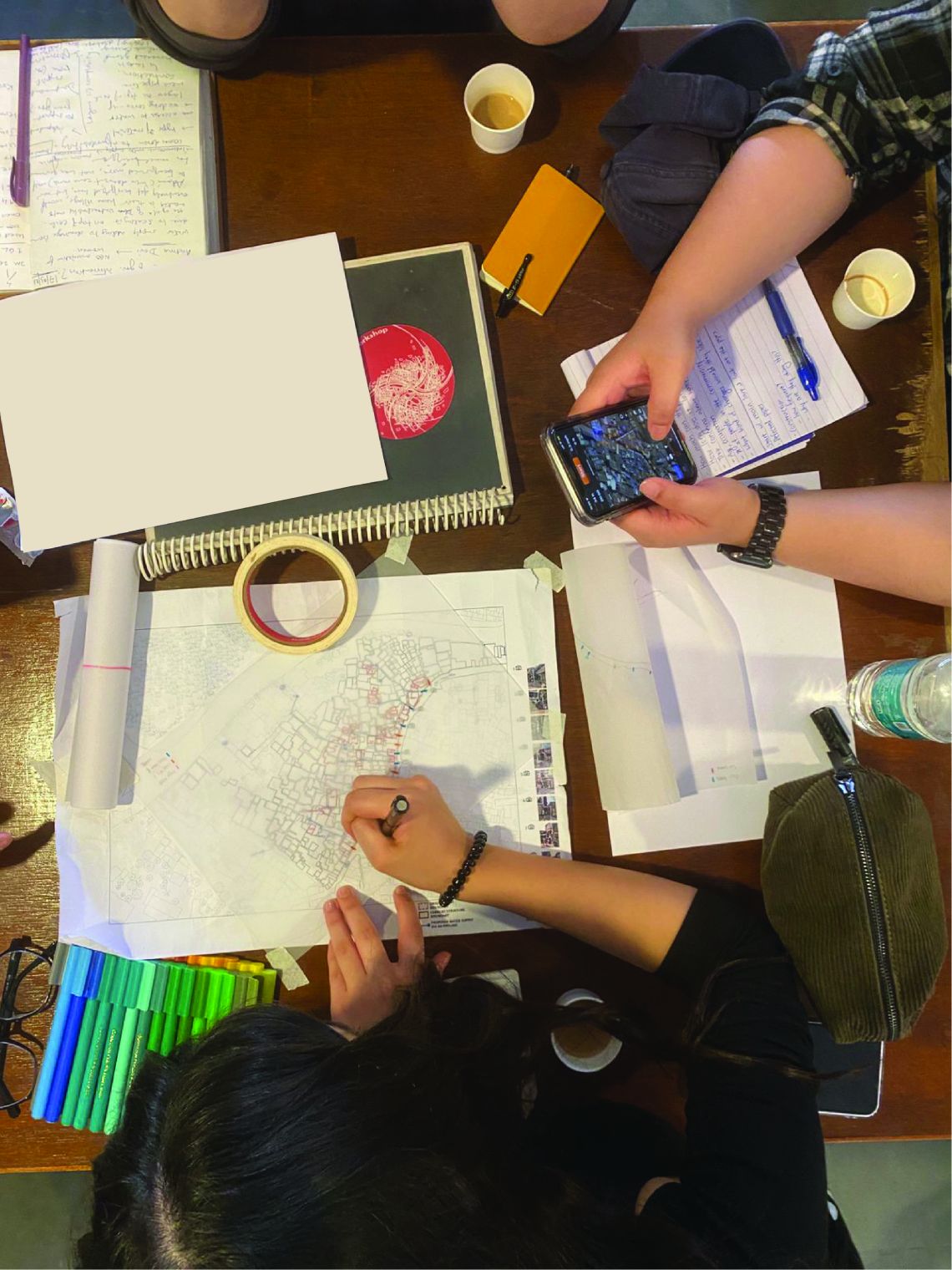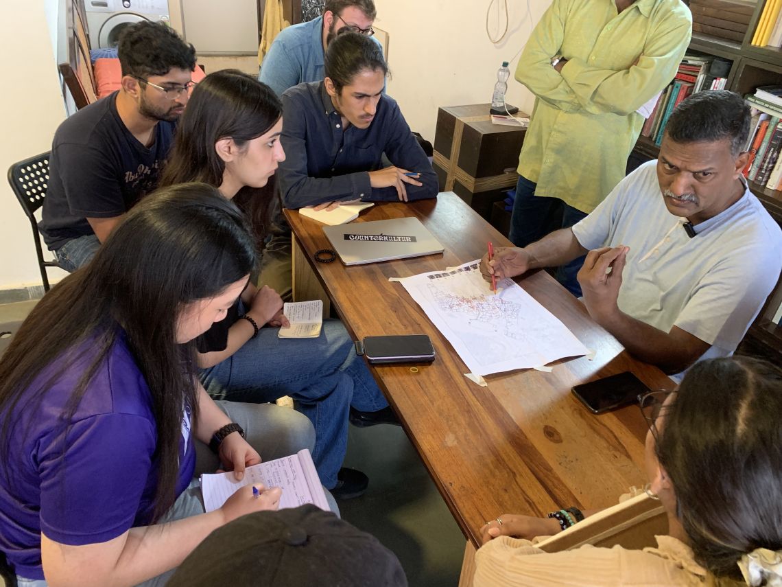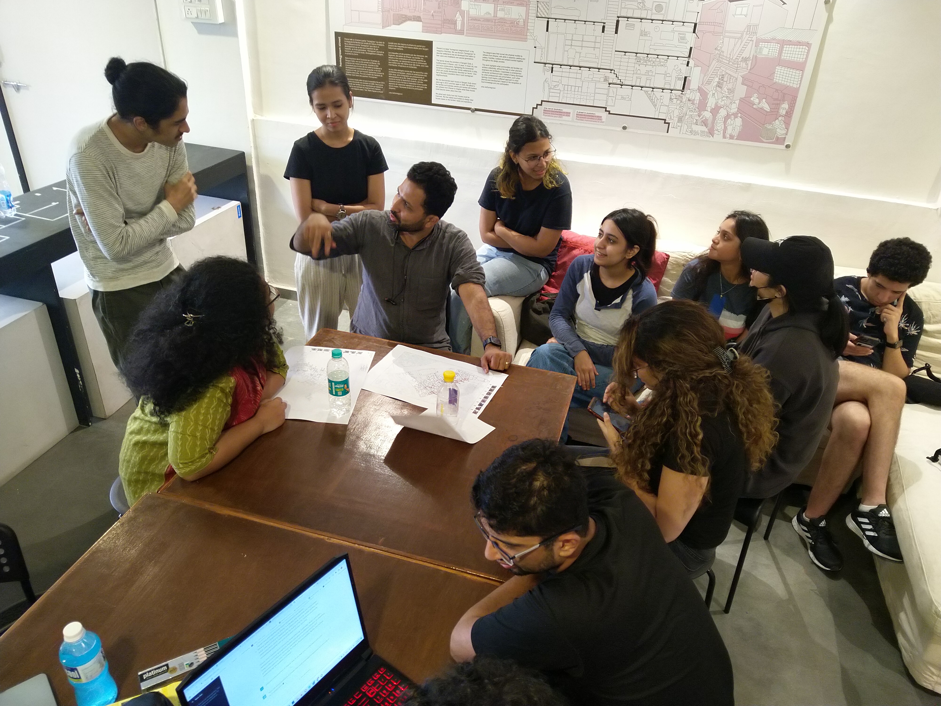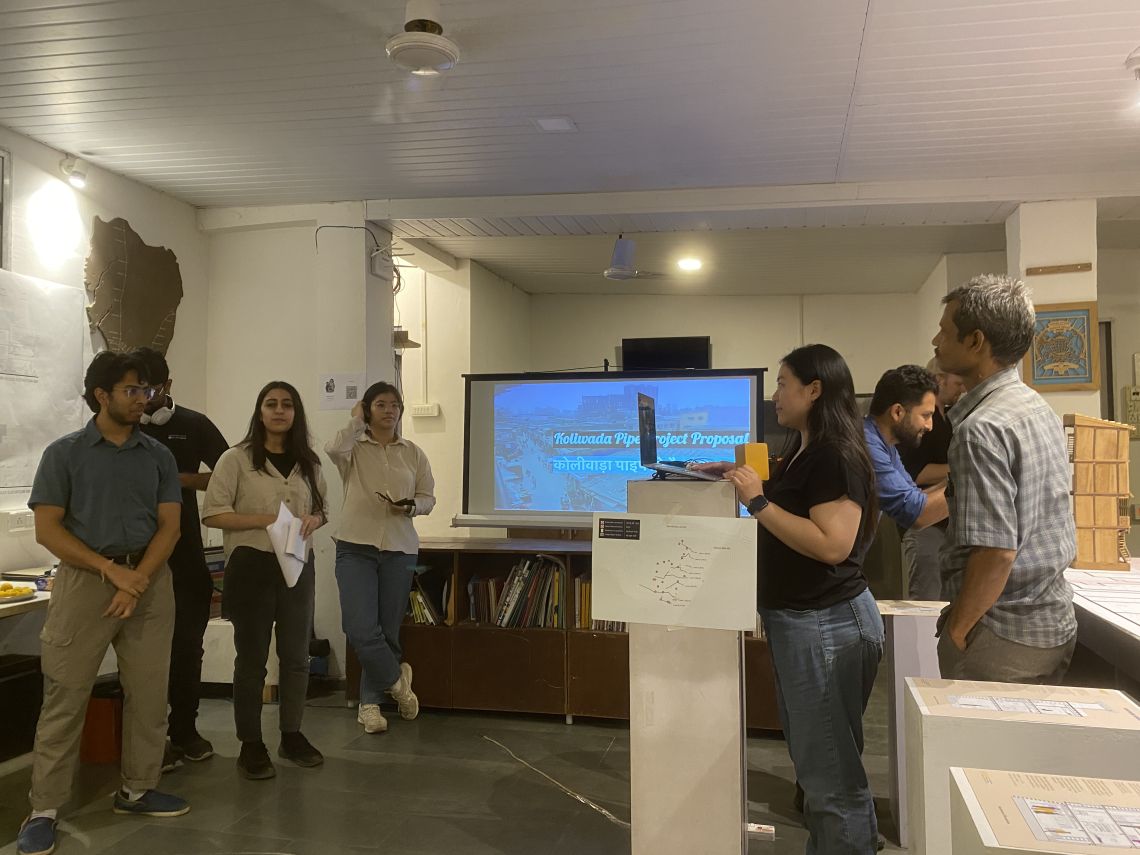 The students went back and forth with regular interviews and mapping due to inconsistencies in existing government plans which haven't been updated since the 70s. Their work further opened up many possibilities. First was the drafting of design guidelines, strategies to raise awareness about the benefits of installing 6-inch pipes in individual lanes, Budgeting with cost-efficient materials, ways to install the new system without disrupting the old one, an observation period to ensure a smooth transition, and a contingency plan to cover residents whose water supply might inadvertently be affected. During the week, students gathered data through various sources and formed groups to further enquire about issues pertaining to the larger community. Over the course of the next seven weeks, they will detail out the design guidelines that could be tested out by the urbz team in collaboration with the Koli Jamat Trust.