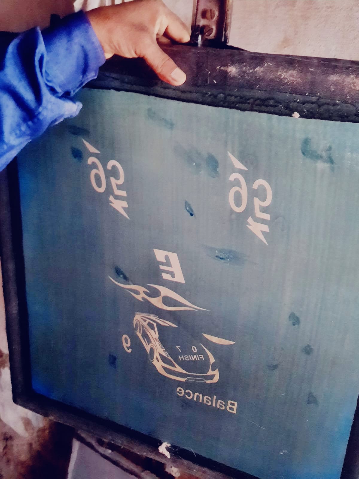 Upon arriving in Dharavi, Ravi began working in the screen-printing industry, initially making frames and designs for textile printing. Over the years, this skill became both his livelihood and passion. With more than 30 years of experience in this field, Ravi has since established his own business, which he has been running for the past decade. His work is not only technical but deeply creative. He designs and constructs the frames used in screen printing, adapting them to the specific preferences of his customers. Much of this work is done manually, requiring a meticulous and practiced hand. Ravi demonstrated this process, laying a frame on a light table that projects the design onto a mesh surface, a technique central to the production of printed textiles like T-shirts and pants.