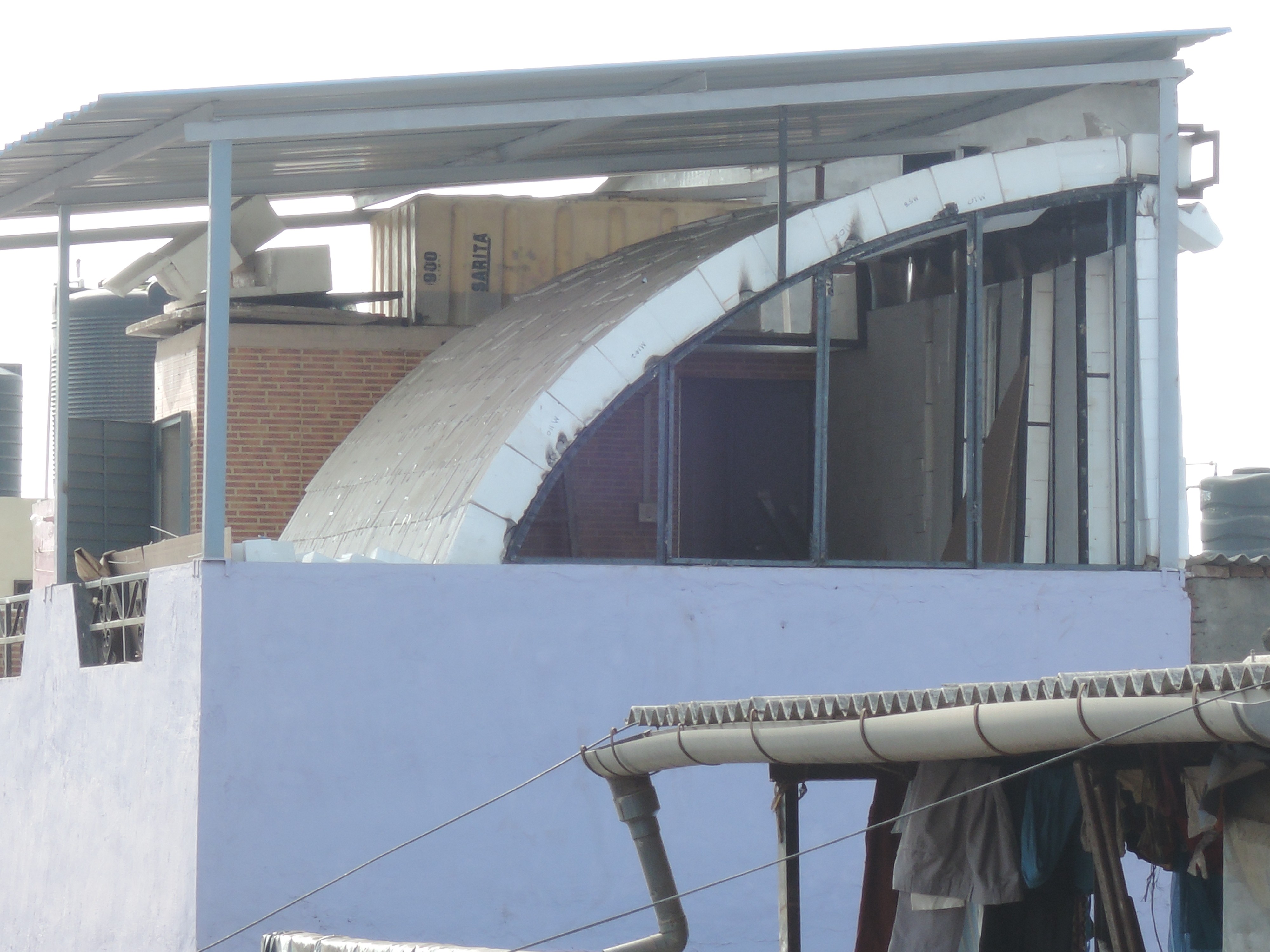 Whatever followed was really a spin-off of the several discussions with POP Lab, but had no connections with their own on-going experiments. The thing is – our local partner Pankaj Gupta, saw many possibilities for constructing our new office with it, which was encouraging. Technically it was a lightweight kuccha material so we could use it to build over an existing pucca structure. If designed appropriately, it could also be dismantled easily, thus broadly working within the legal guidelines.