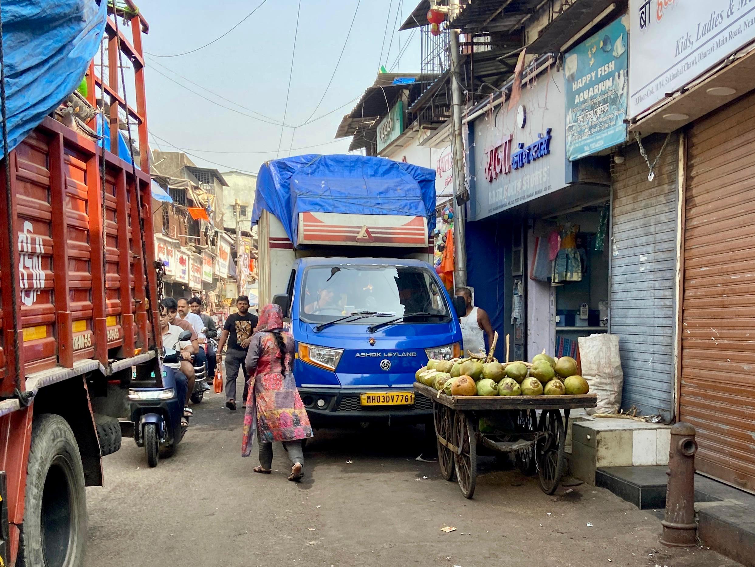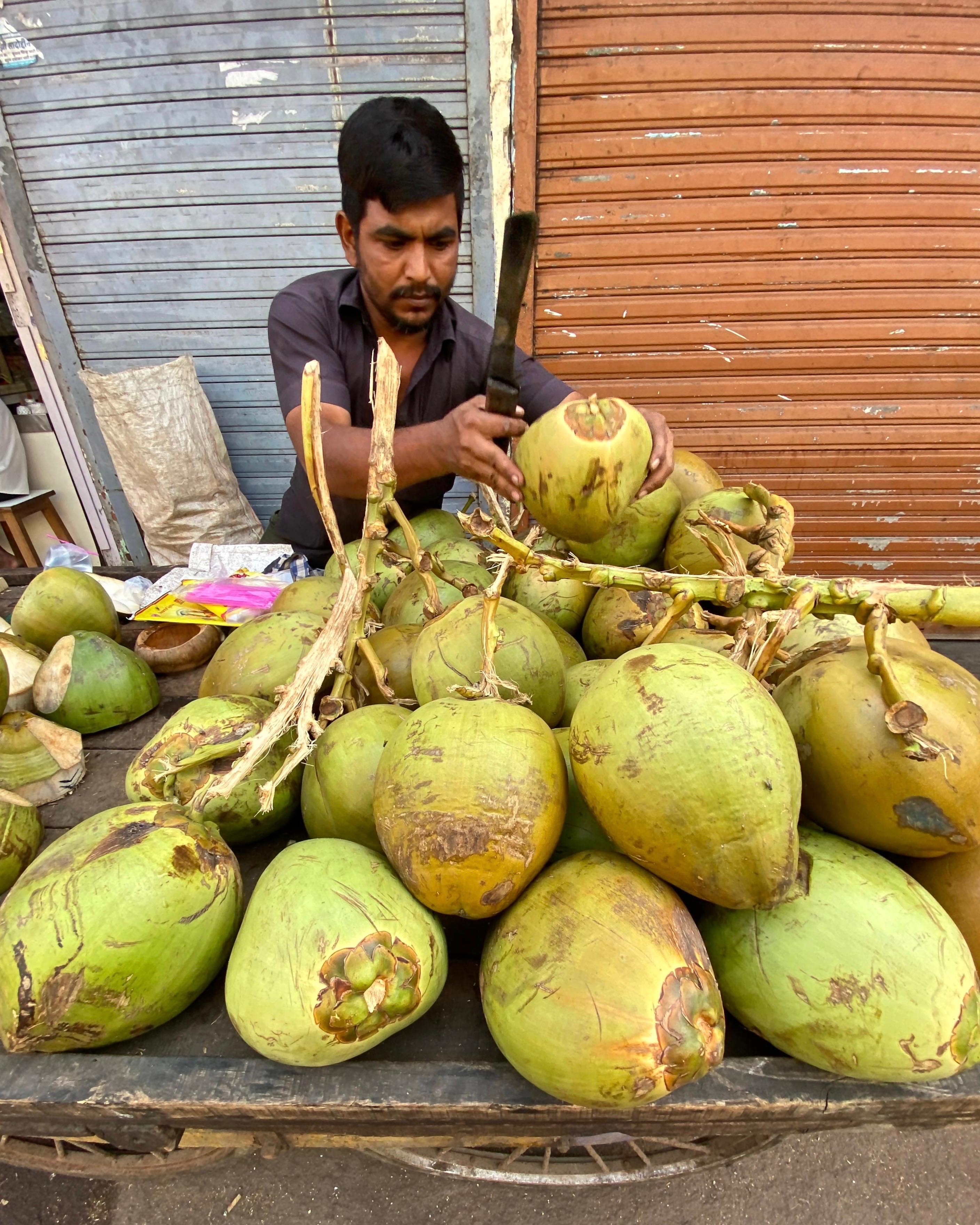 He starts his day at 2:00 AM, gets up, splashes water on his face, steps out of his King’s Circle room, and takes a fifteen-minute walk to a nearby park where he usually secures his cart at night. He then pushes his cart towards Sion Hospital, where he waits for the coconut-carrying truck arriving from Mysore, Karnataka, to stock up his cart. After stocking up his coconuts, he again takes the cart to the park and chains it to the fence of the footpath on the periphery of the park, trusting that his stock will be safe until he returns. In his six years of business, his cart hasn’t been stolen once; however, the police had confiscated his cart a few times, and he had to pay a fine to get it back.