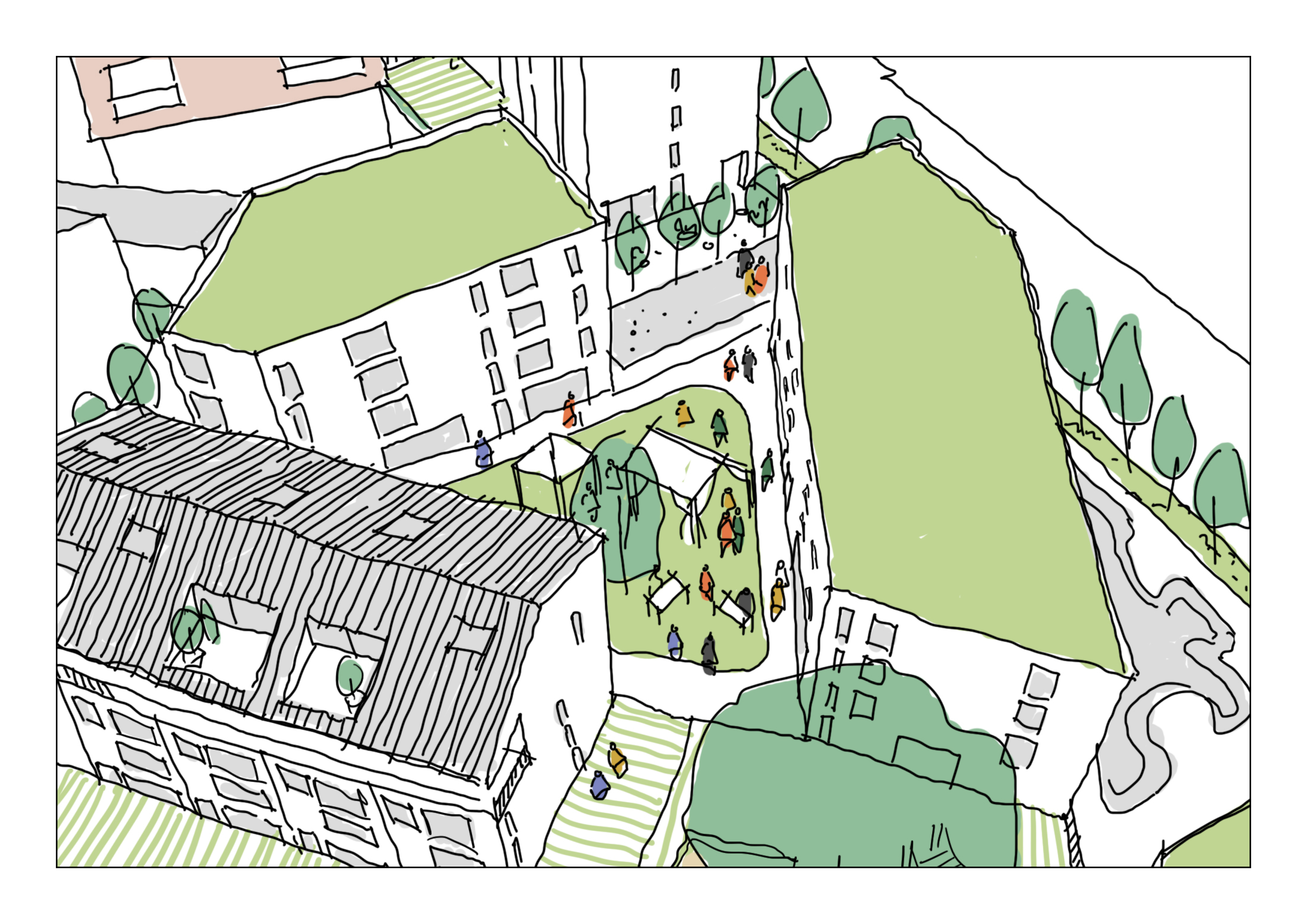 “Mess is More” acknowledges the fact that a neighbourhood planned from within, through an inclusive participatory process, may not always look as neat and tidy as one designed from the controlled environment of the architect’s studio. Its form may reflect programmatic complexities, for example, an emotive attachment to trees, or may not have remarkable structures at all. It may embody the biographies of its residents and the contradictory interests of a diverse community of inhabitants. However complicated and messy, such a process leads to a higher degree of local appropriation and identification for the neighbourhood.