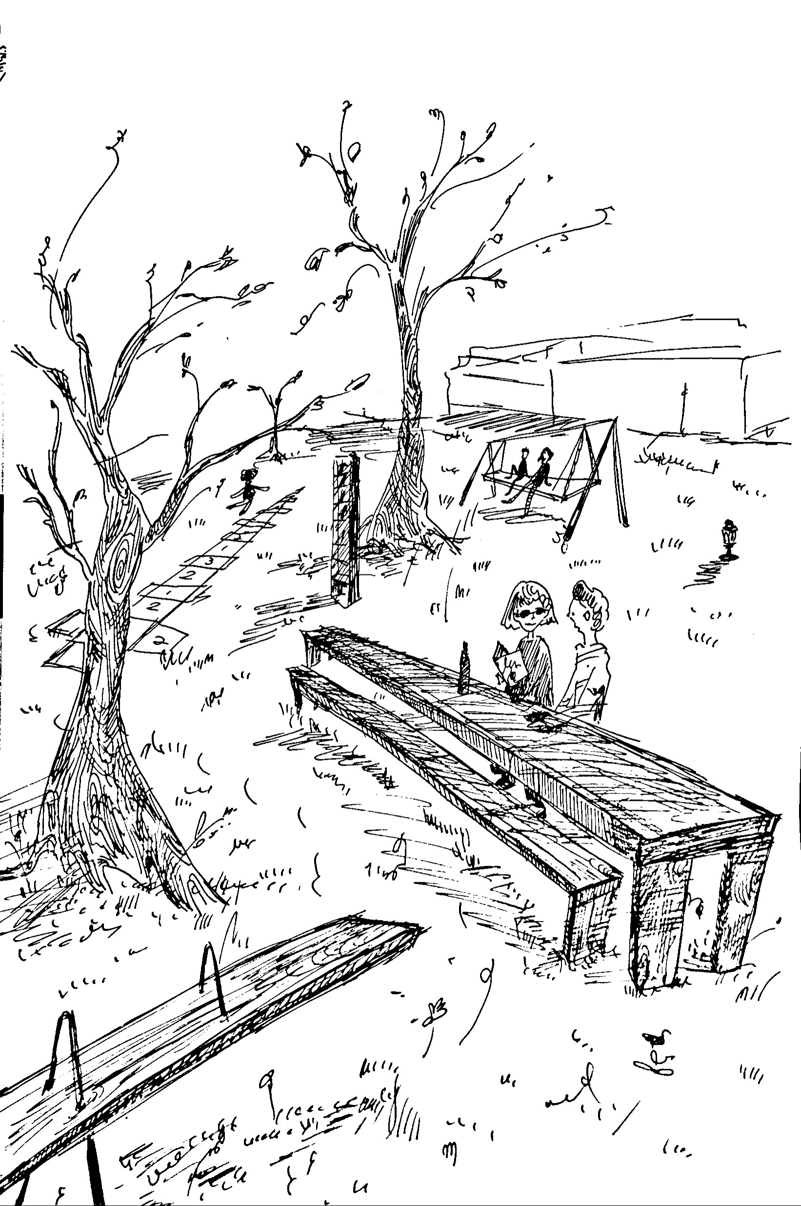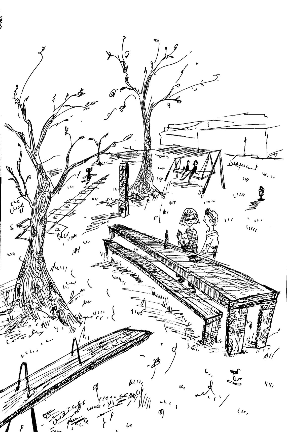 The Langer Tisch is an art installation by Uschi Huber and Boris Sieverts in Cologne, Germany: a long wooden table placed on a very long strip of grass. It embodies everything a successful public artwork should be—practical and inclusive, yet also utopian and provocative. Like a lot of public art, it strives for survival. The six GDI students who worked on this site (Samuel, Nathan, Roy, Ninji, Satoka, Lucyz) grasped these qualities and expanded upon them, building on the idea of length as the central motif. They unlocked the project's full potential by imagining an even more ambitious and provocative vision inspired by the length – and brought this dimension into the idea of Langer Park.