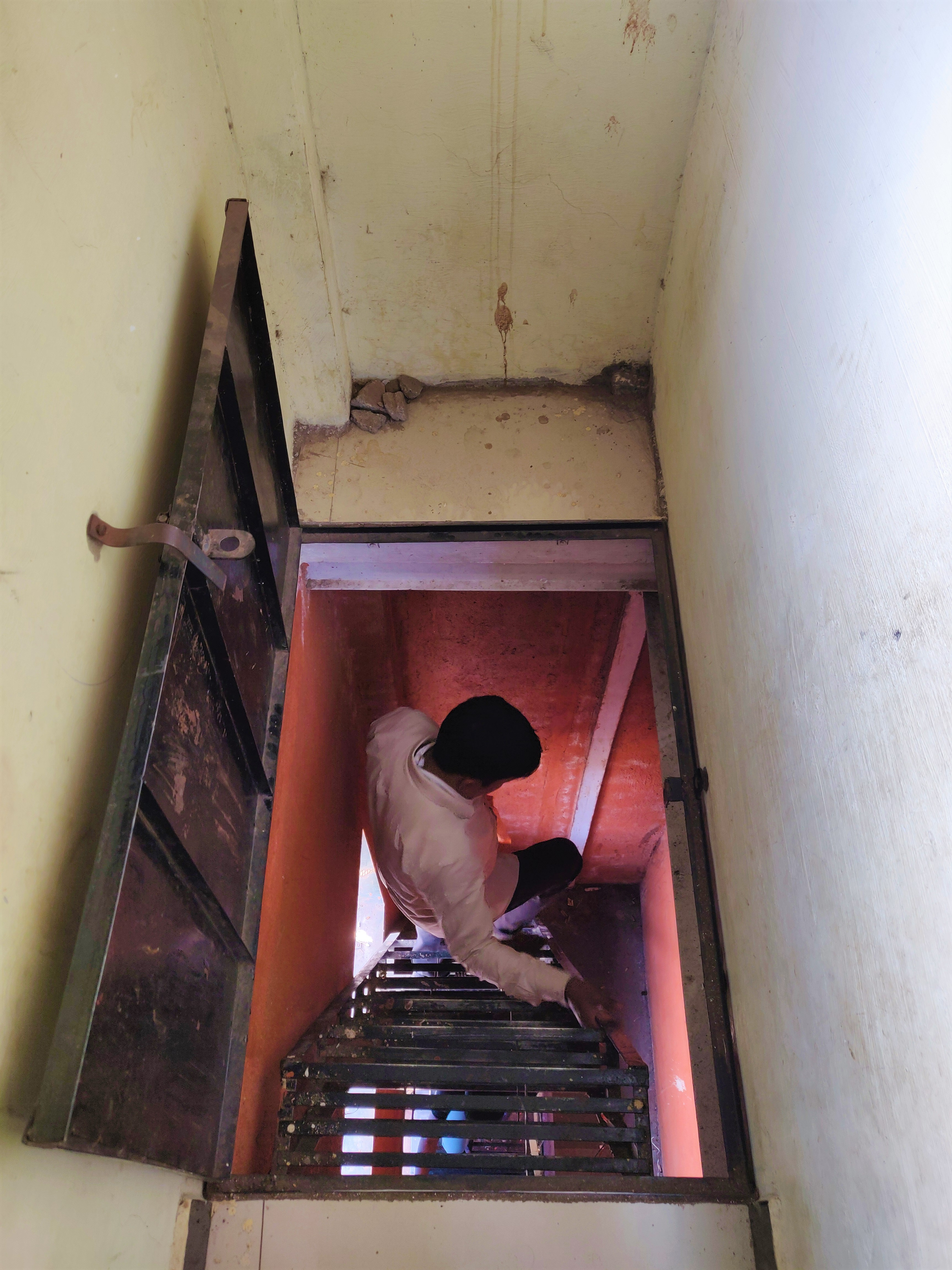 The staircase acts in pure function, stripped of the conventional stone detail for the tread and an enclosed riser. Here, what remains is the skeleton of the stair bearing and baring “only the essential.” Constant trial and error with design have given rise to the “preferred” set of construction details within the community. Given the parameter of affordability, this preference solely emerges from the “purpose achieved well at a reduced cost” approach. Interestingly, this approach has contributed to evolving a new standard of design details and construction practices within the community. This “Dharavi construction manual” harbours solutions to some of the most complex problems of space management and accessibility.