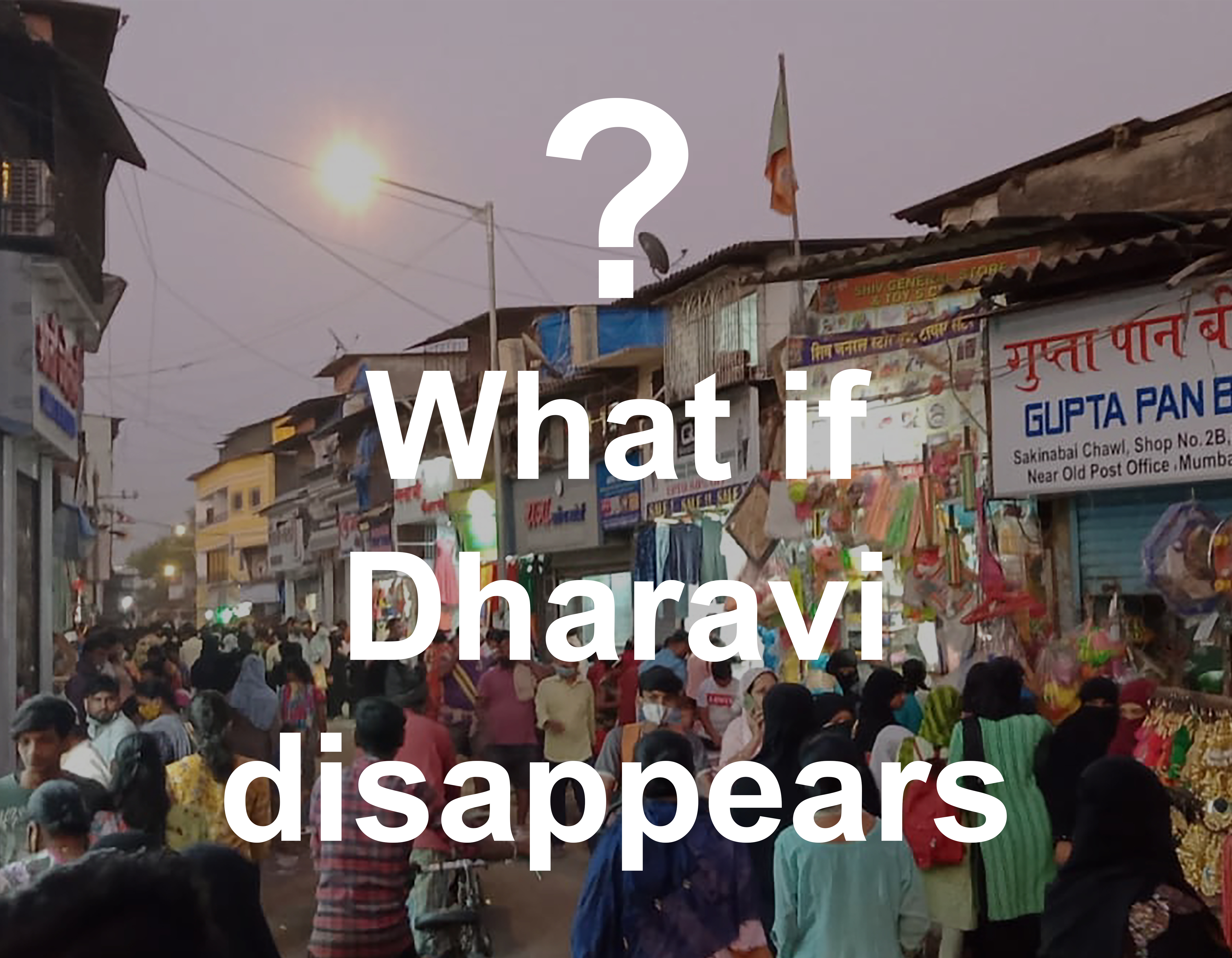 Dharavi existed even before the modern-day Mumbai city. Its transformation from a Koliwada to a large homegrown industrial and cultural conglomerate is commendable. The diverse activities carried out in Dharavi by its people and their culture, makes it an integral part of the urban fabric of Mumbai, to the point where the city cannot be imagined without the existence of Dharavi. Despite this, Dharavi is considered to be nothing but an eyesore by many, and many of its residents face ostracization and discrimination. Due to the sheer ignorance and neglect towards the essence of Dharavi, various multi-million projects for the sake of “Redevelopment” have been put up. Destroying the very fabric and even the livelihood of many people, completely erasing its characteristics as a homegrown neighbourhood to just another concrete jungle in Mumbai. If this carries on the history, uniqueness, and culture of Dharavi will be no more. Hence the question, “What if Dharavi suddenly disappears one day?”