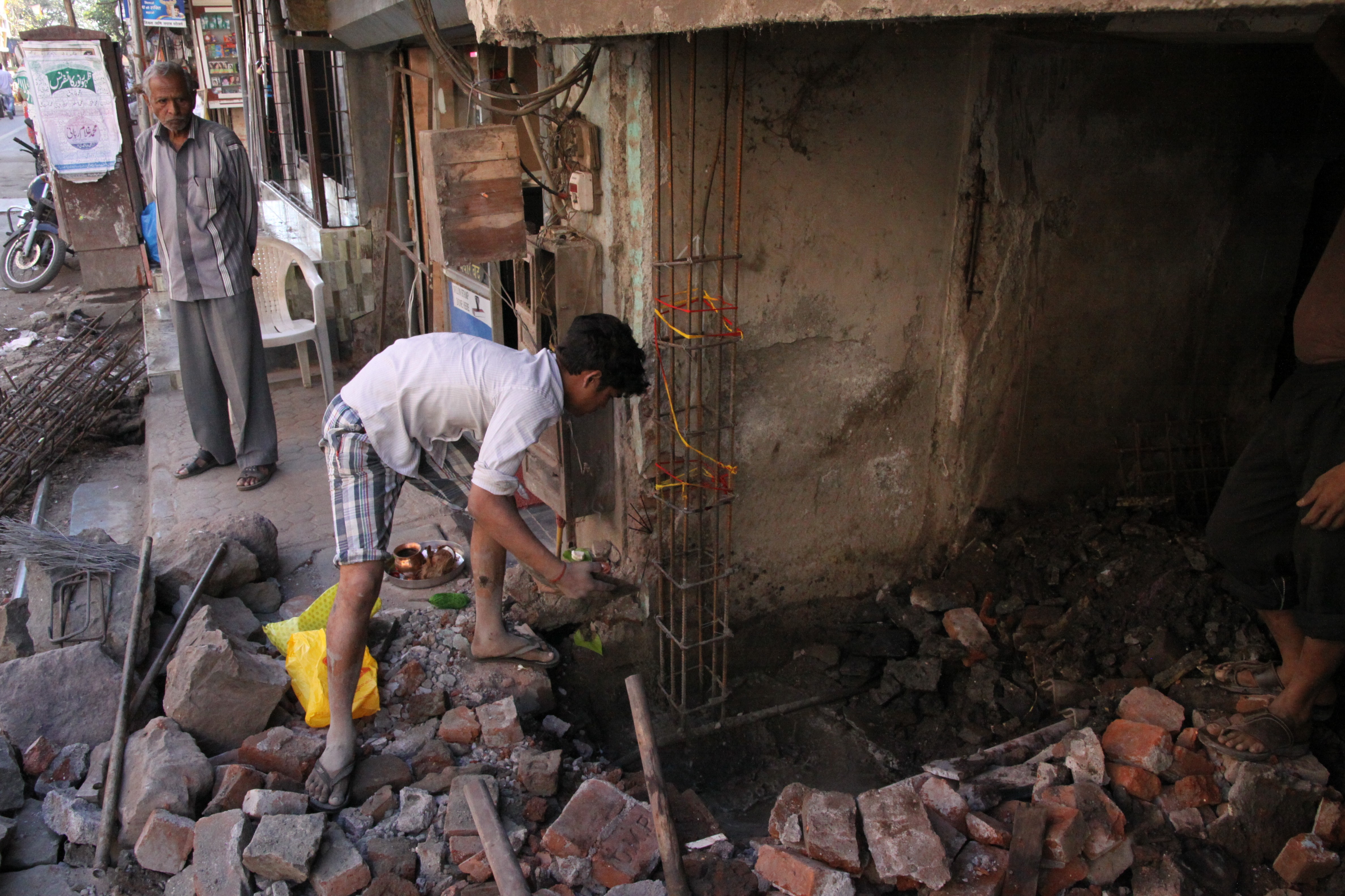 In Shivaji Nagar, there is a particular history of layering of the subsurface on the ground. Originally the top layer of surface was swampland and soft soil. Over a period of time layers of trash and debris got compressed through habitation. The Municipal Corporation placed a harder layer of debris or stones, bricks and other materials to create a segment on top of the surface, which started to act as the ground. However this subsurface is still constituted by soft and unstable material, thanks to the high water table in the area, making for unstable foundations.