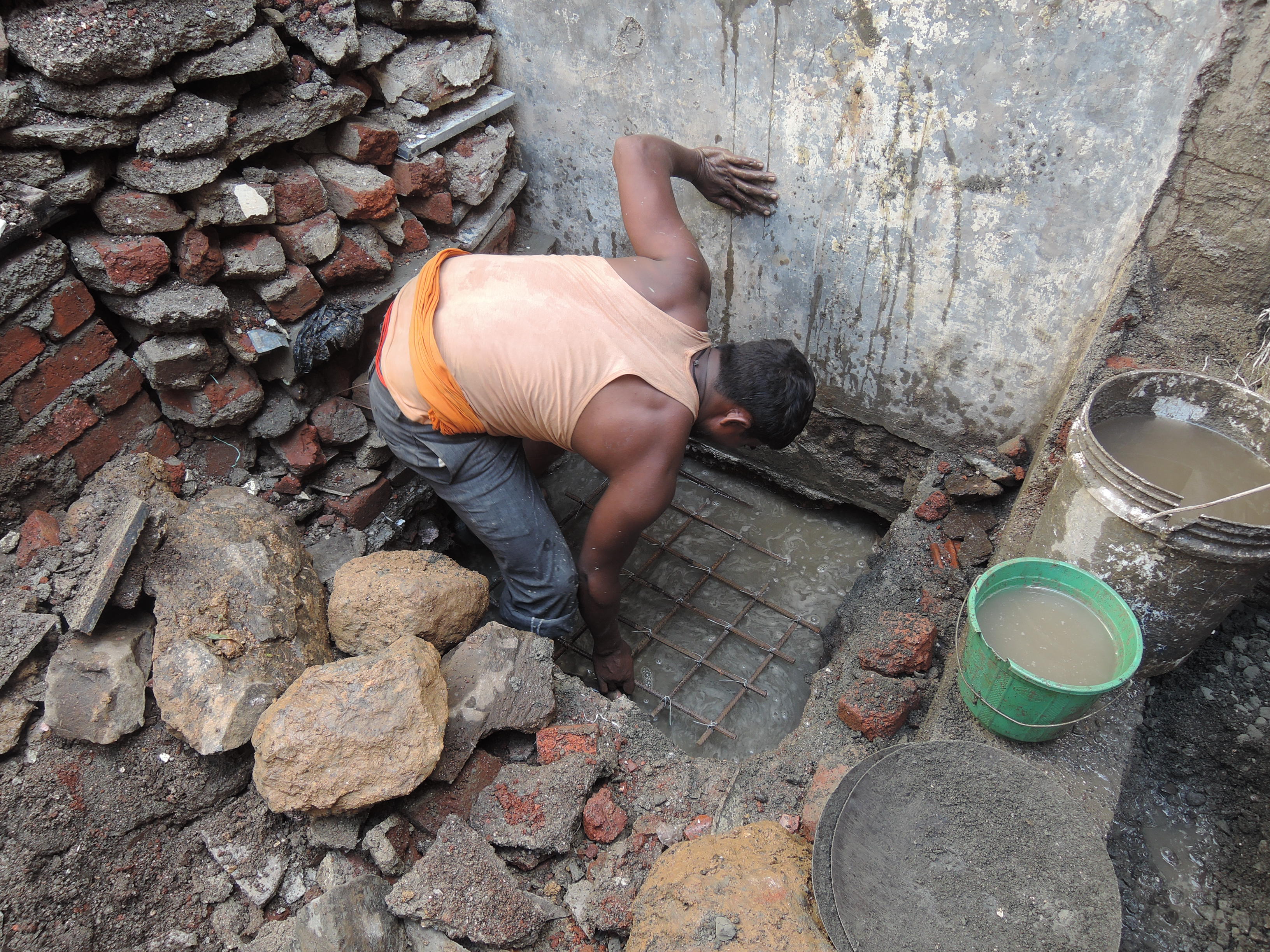 As URBZ has involved itself in local construction projects over the last couple of years, it immersed itself quite literally in the stuff that lies beneath, that makes up the foundations of all construction activity. This is a report prepared by Jai Bhadgaonkar and Giovanni Rapanna about how people in Shivaji Nagar manage to build homes that stand above a liquid underground.