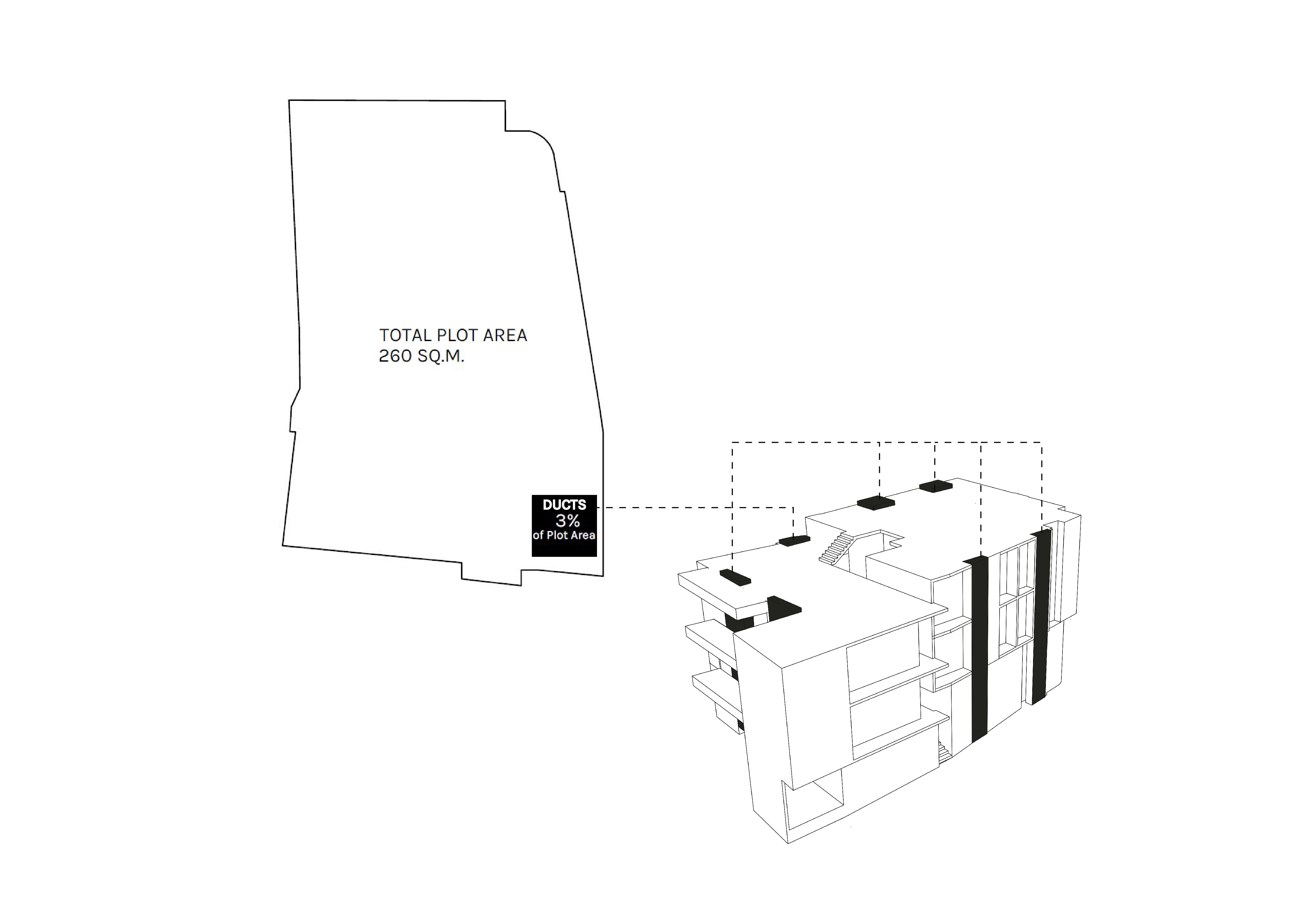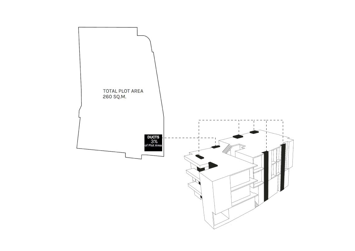 - One side of the plot shares a common wall with a neighbouring plot, leaving us with only three sides of the plot to have windows for light and ventilation