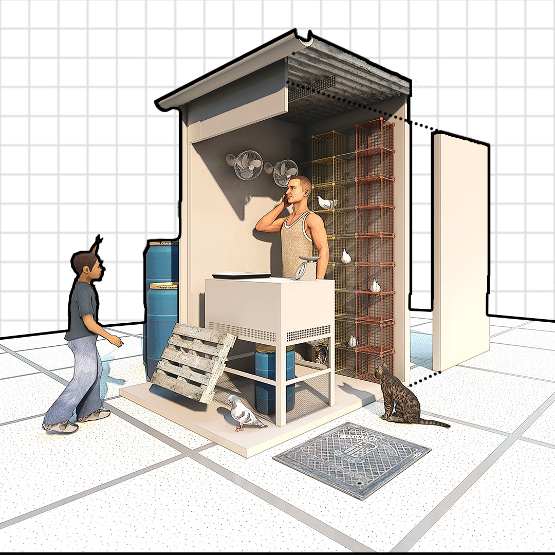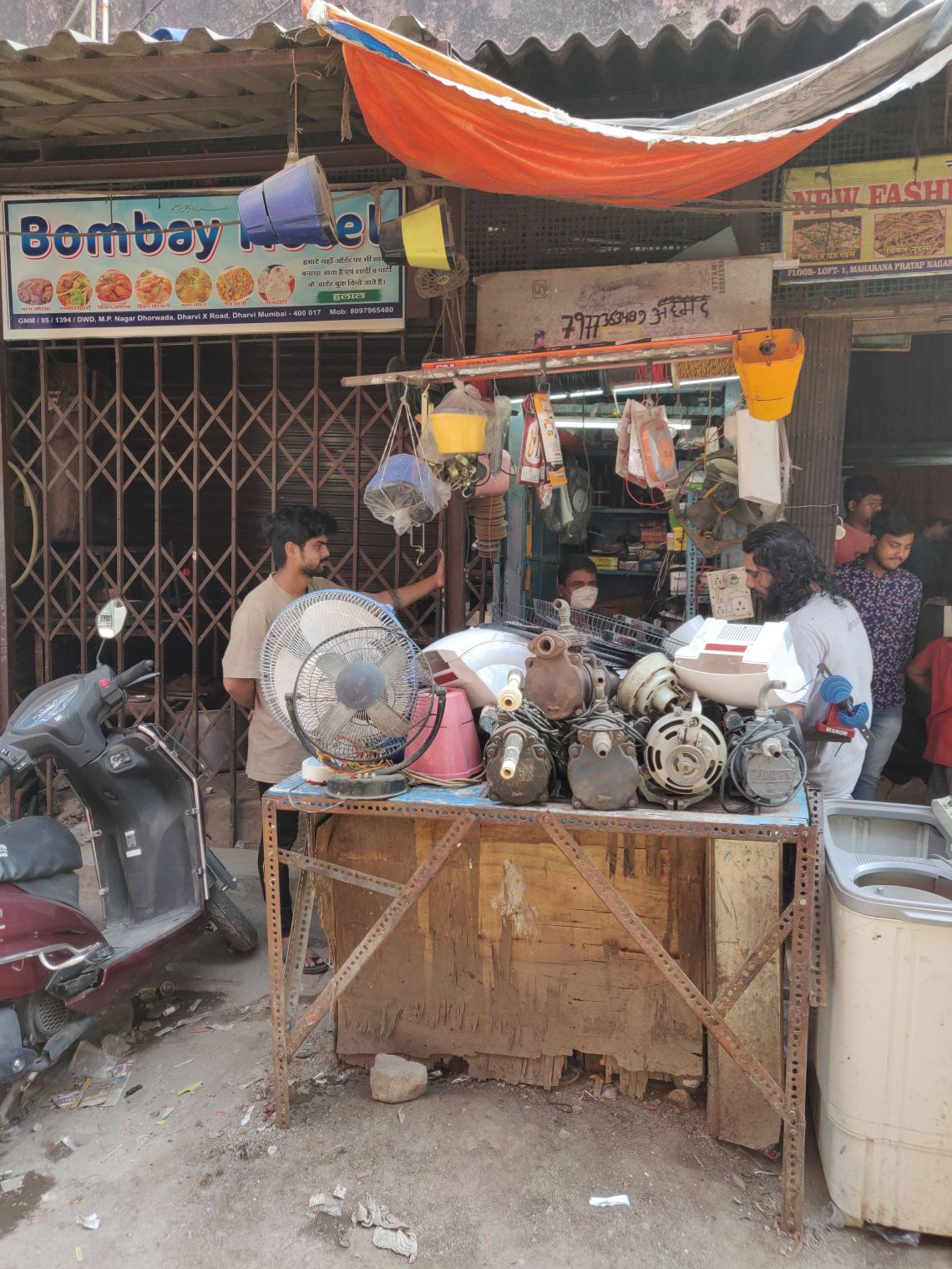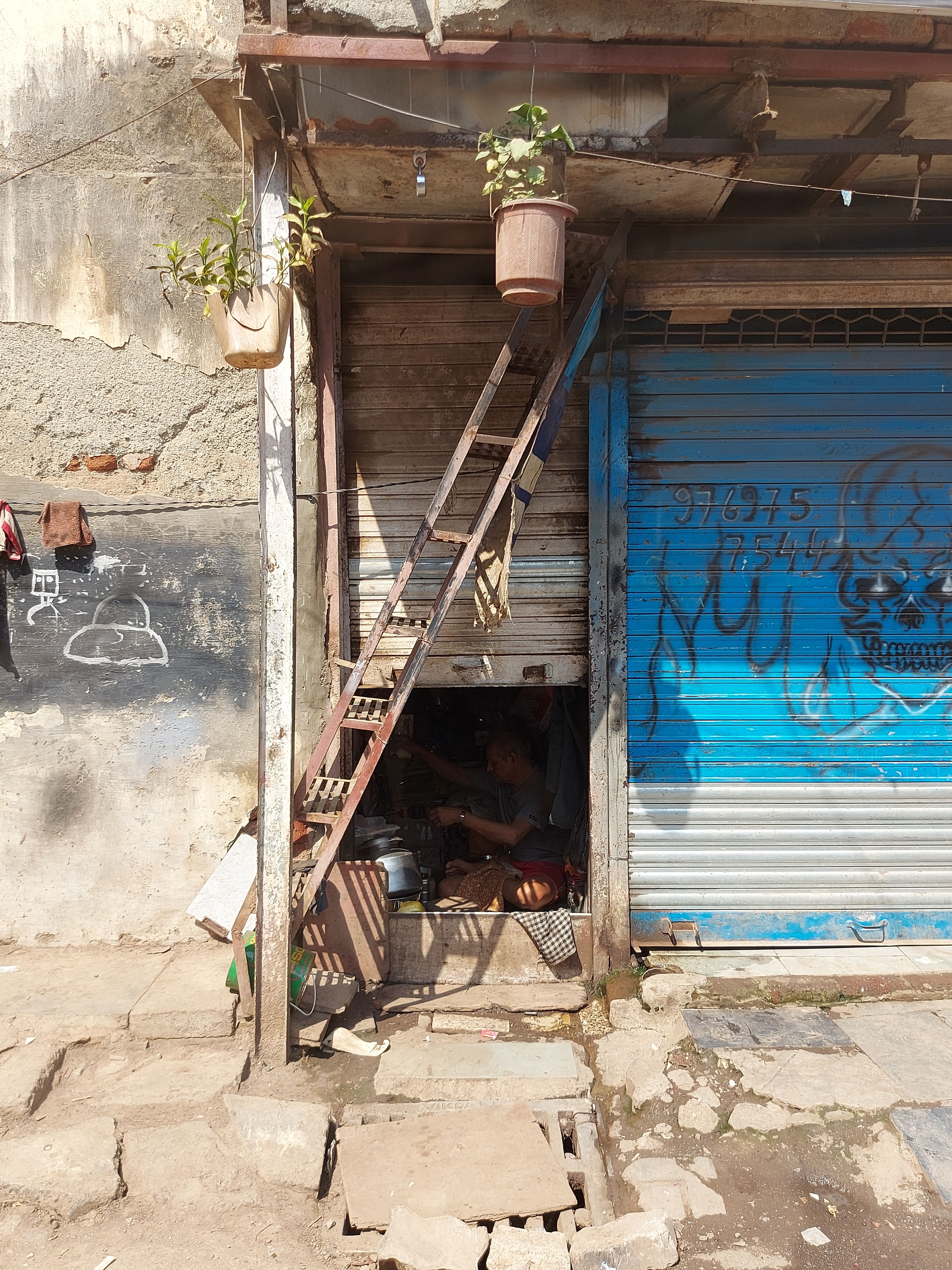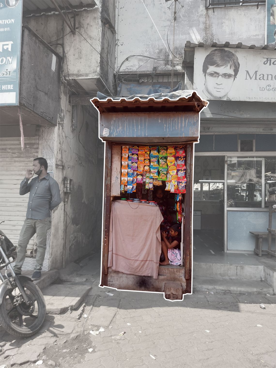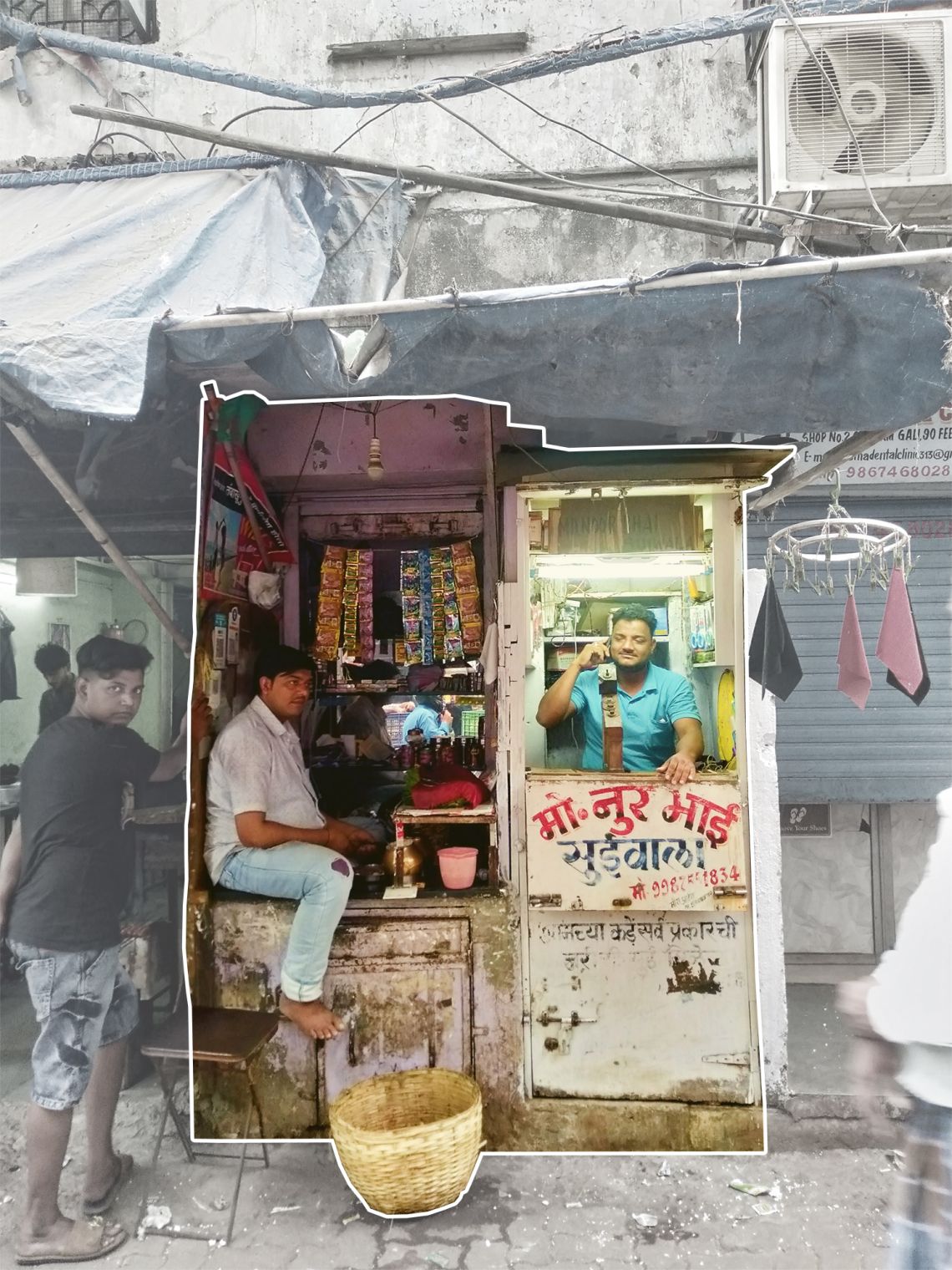 …is the diction commonly used to quantify a 3 feet x 3 feet space in Dharavi. What seems spatially redundant at first glance, is interestingly a commodity to the businesses thriving within Dharavi. Manifold businesses emerge out of a 3x3 feet footprint and cater to the diurnal requirements of the community. These self-taught space-management experts have managed to ‘fit in’ a fully functional tea stall, a grocery store, a chicken coop, a paan shop, a cobbler’s shop, a metal fabrication workshop, an electronics repair shop, and a clinic - all within 9 square feet of space.