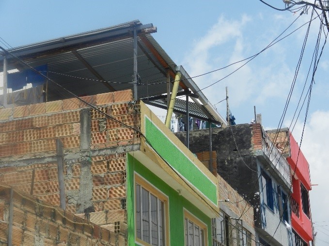 After all this learning, from Bogota and also thanks to my travels to Mumbai, I proposed a system of rainwater harvesting, which uses modular tanks, and a water heating system, which takes advantage of the terraced area in the homes of Ciudad Bolivar.