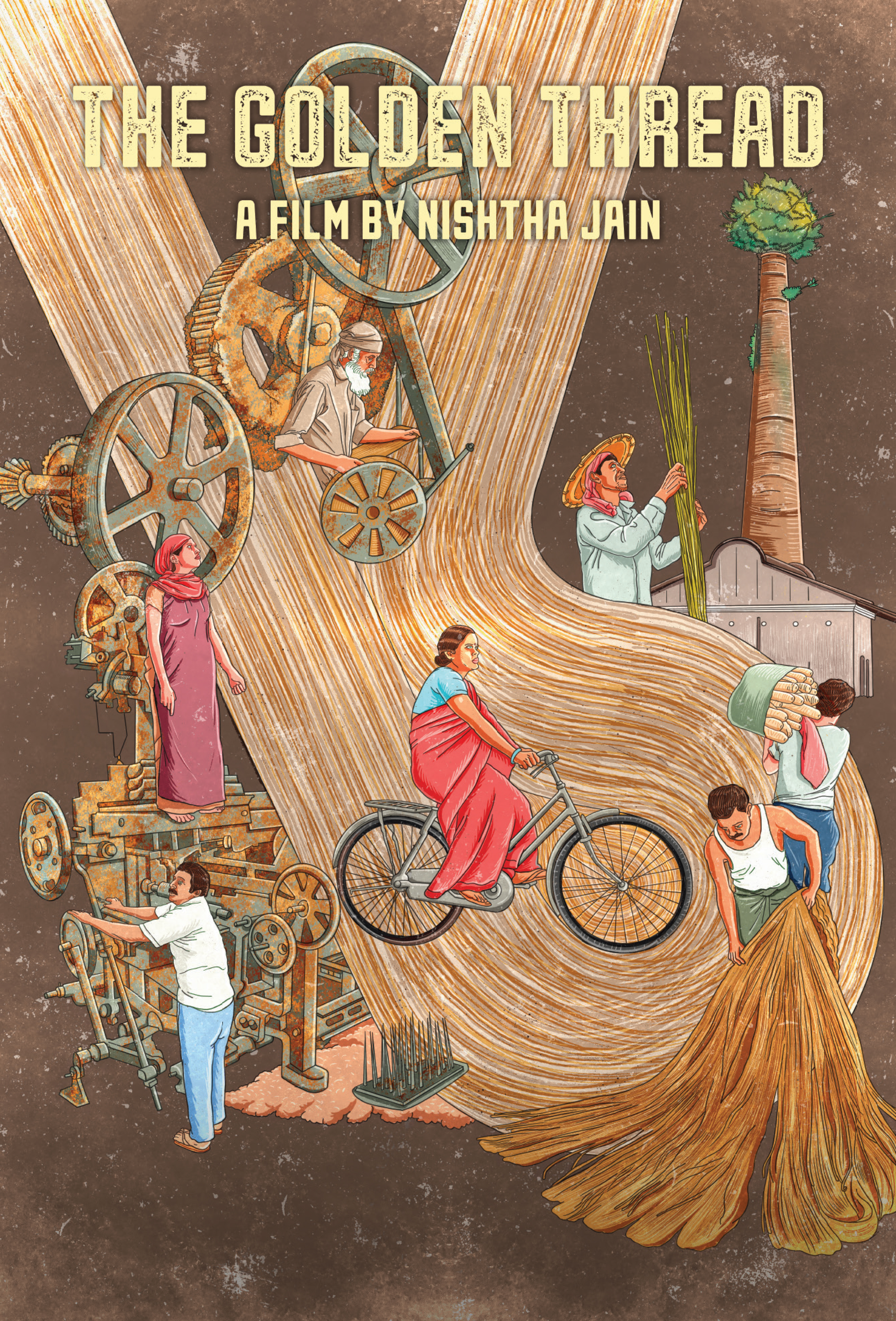 ‘The Golden Thread’ takes the viewer through a journey about a near-forgotten raw material, pins it down on a near-forgotten region, where it is grown, processed and produced in a replay of a near-forgotten moment of history – the industrial revolution. The film tells the story of Jute set in the twenty-first century – simultaneously evoking a moment of political theatre that was alive and kicking in the times of Patrick Geddes.