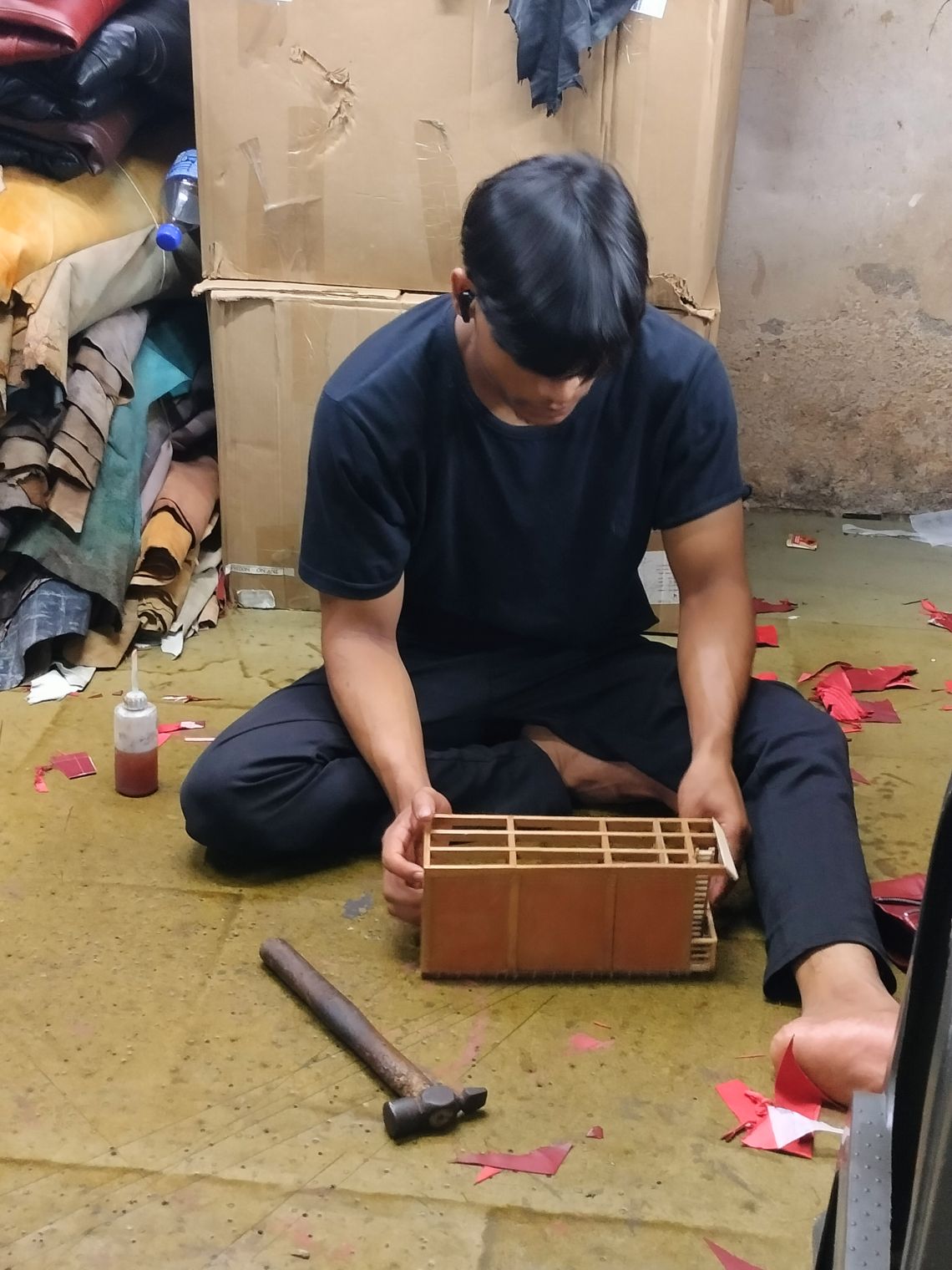 He is thirty now, but he began working in the leather industry at twenty, learning in playful moments from his elder brother, who worked in a workshop nearby. Irfan watched, learned, and slowly found his interest.