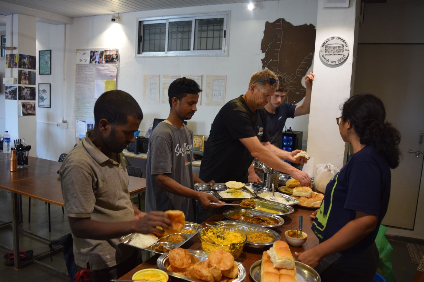 The residents of Koliwada couldn’t believe that people they normally saw as tourists were mixing cement with aggregate, cutting and tying rebars for concrete and casting beams on a construction site for a building in their neighbourhood. The Dharavi Koli Jamat was so impressed by the team’s work spirit that they organised a dinner at the community hall to felicitate and thank them.