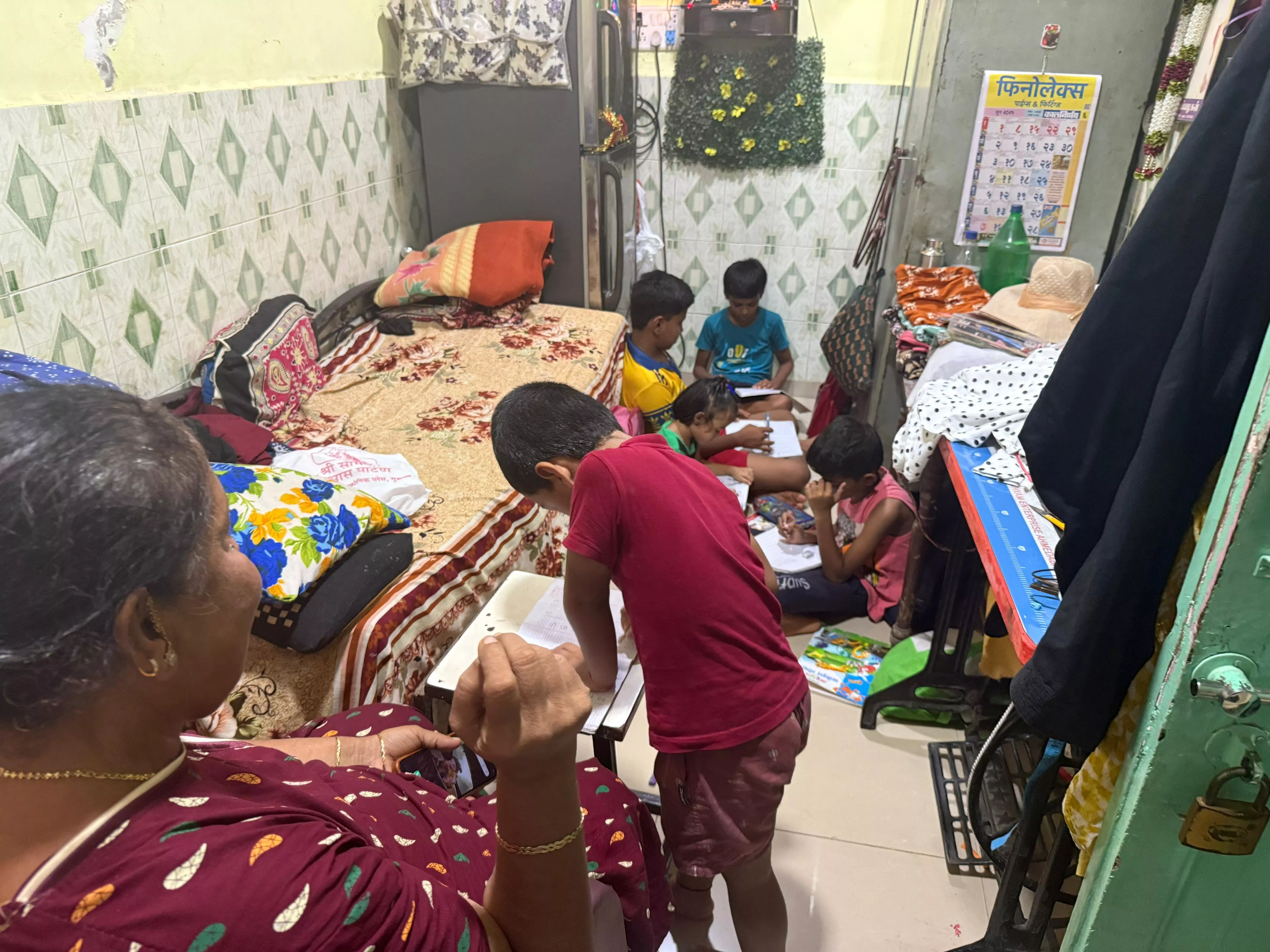 Bimla Aunty has lived through many changes in Dharavi, observing quietly how government decisions ripple into the lives of the children she teaches. She speaks about how the shift of curriculum SSC (Secondary School Certificate) to CBSE (Central Board of Secondary Education) has taken away the children’s vacations and left them with too much to study and rote-learn, and too little time to grow. She spoke much of how, back in her day, tuition was looked down upon. Over time, it became more normalised. Unfortunately, this took away much of the children's time.