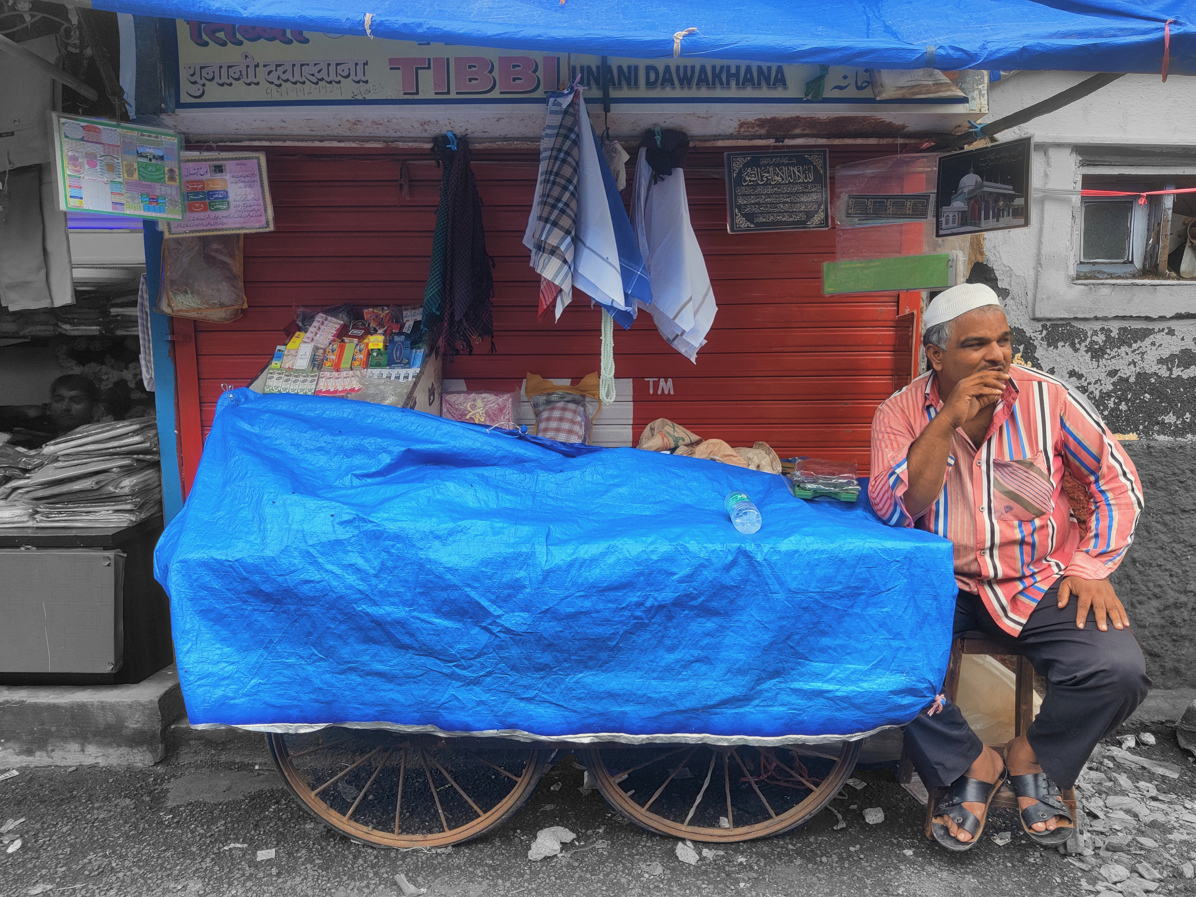 Conversations with these vendors revealed that to acquire the required spatial capital for the various economic activities, a whole economy of people and institutions is involved. For starters, the vendors are required to pay a daily unofficial tax, called hafta, created by corrupt practices to all those who exercise informal control over street space. These actors can include the landlords of the plot of land they set up their stores in front of, local politicians in charge of the specific stretch of land, Mumbai Police and BMC officials. The rates for each of these actors range between Rs. 10-20 each day, as has been reported anecdotally by the vendors themselves. The passing of the Street Vendors Act of 2014 recognises the legitimacy and legality of the activities of street vendors through a process of regularisation and licensing. This, along with the payment of the hafta would indicate the establishment of a right to the city exercisable by the vendors. Yet, access to these public spaces remains precarious. There is no guaranteed long-term access, with officials from the Mumbai Police or the Brihanmumbai Municipal Corporation making rounds to demand higher bribes, confiscating the goods being sold by the vendors, or quite often, both. There also exists a relation between the physical remnants left behind on the street at the end of each term by these structures which are dependent on the ownership and duration of occupancy of the space. This requires the structures set up by these vendors to take a material form which allows them to not only erect them quickly but also take them down just as fast. The quick response that the built structure exhibits towards its social and economic context along with its capacity to adapt to the climatic conditions is adhocratic in its very nature.