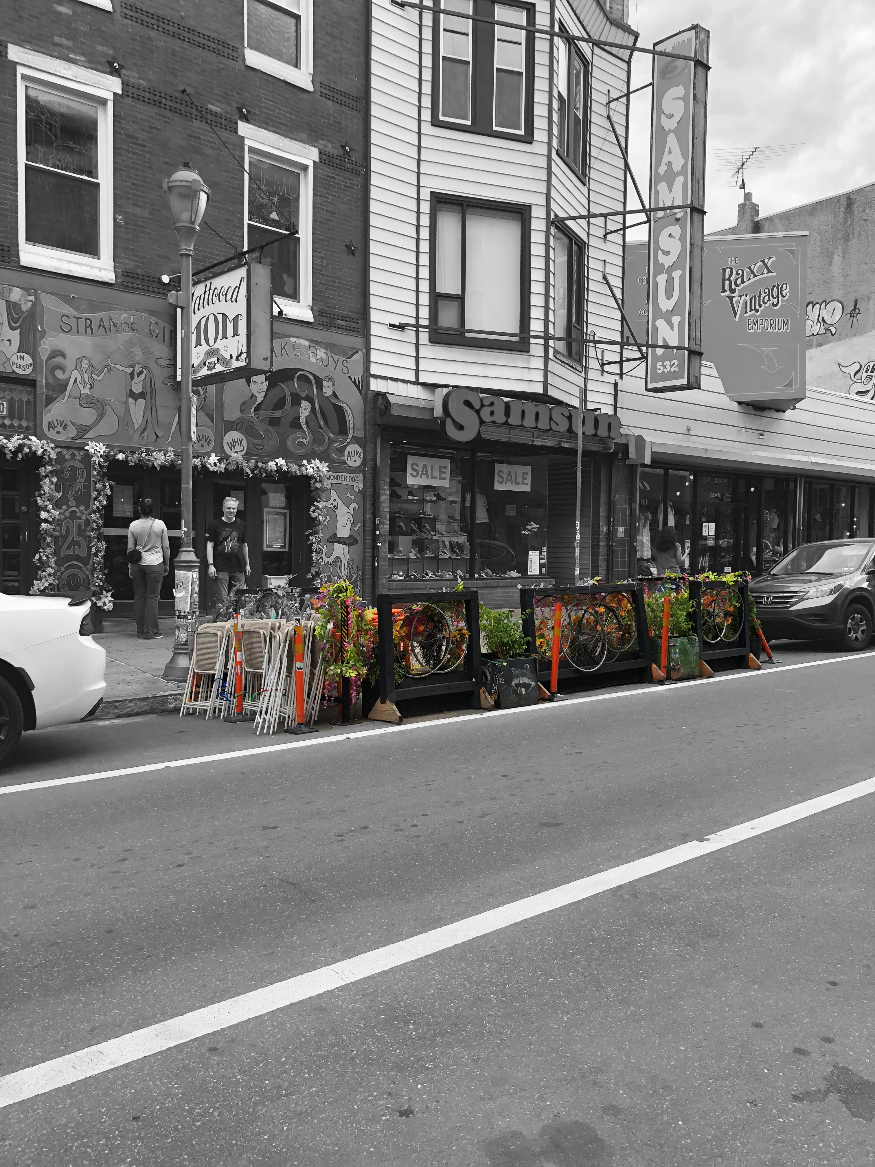 In Philadelphia, the patio structures, which began as an emergency COVID-safety measure in the summer of 2020, are now being considered as potentially permanent fixtures of many cityscapes in the US. During the first summer of COVID lockdown in Philadelphia, the city began to issue emergency temporary licenses to restaurants allowing them to occupy public streets, sidewalks, and parking spaces to make room for restaurants to safely host diners. Customers, restaurants, and city-dwellers alike are enjoying what these structures bring to the city block, yet a number of contradictions arise from Philadelphia's eagerness to formally grant public space to restaurants for the production of private revenue. The introduction of the self-constructed patio draws focus toward the ways in which city government codifies legitimacy, which in turn shapes and restricts access to urban space.