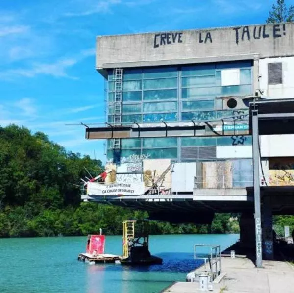 In 2018, during an annual raft race on the river Rhone organized by “intersquat” (a congregation of squatter collectives), an ambarcation reached Porteous and a crew managed to climb on the building, open it and make way for occupation by a diverse group of youth, artists and activists. This action was aimed at challenging a plan by the State to use the site to host a juvenile detention center. Instead, the occupants turned Porteous into an autonomous alternative cultural space. Since then, the place has hosted many parties, events, discussions and projects.
