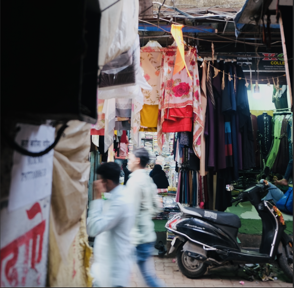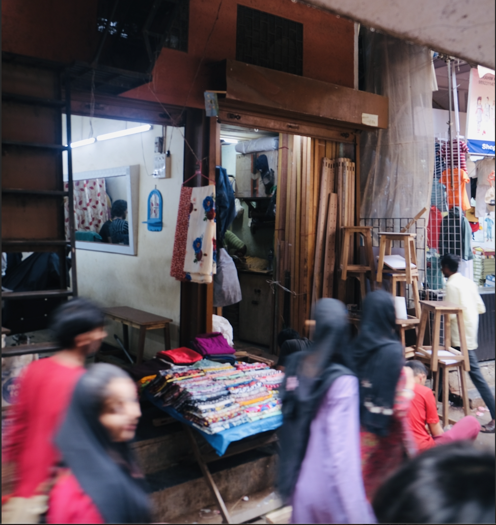 Ibrahim Ansari's family has a long-standing history in Sangam Gully, tracing back to the pre-independence era. Ibrahim, along with his wife Shehnaaz Parveen and their six-year-old son, resides in Dharavi, while his two brothers live elsewhere in the same area. The family's original business was in timber and making wooden frames for jhari (silk embroidery), but they had to pivot as the market for their traditional trade declined. Ibrahim transformed his portion of the land into a G+1 structure, with a footprint of of 19’ x 18’8". He occupies half of this plot, running a garment store on the ground floor and living above it. The other half of the plot is rented out, consisting of a readymade dress shop on the ground floor and a bag-making factory above it.
