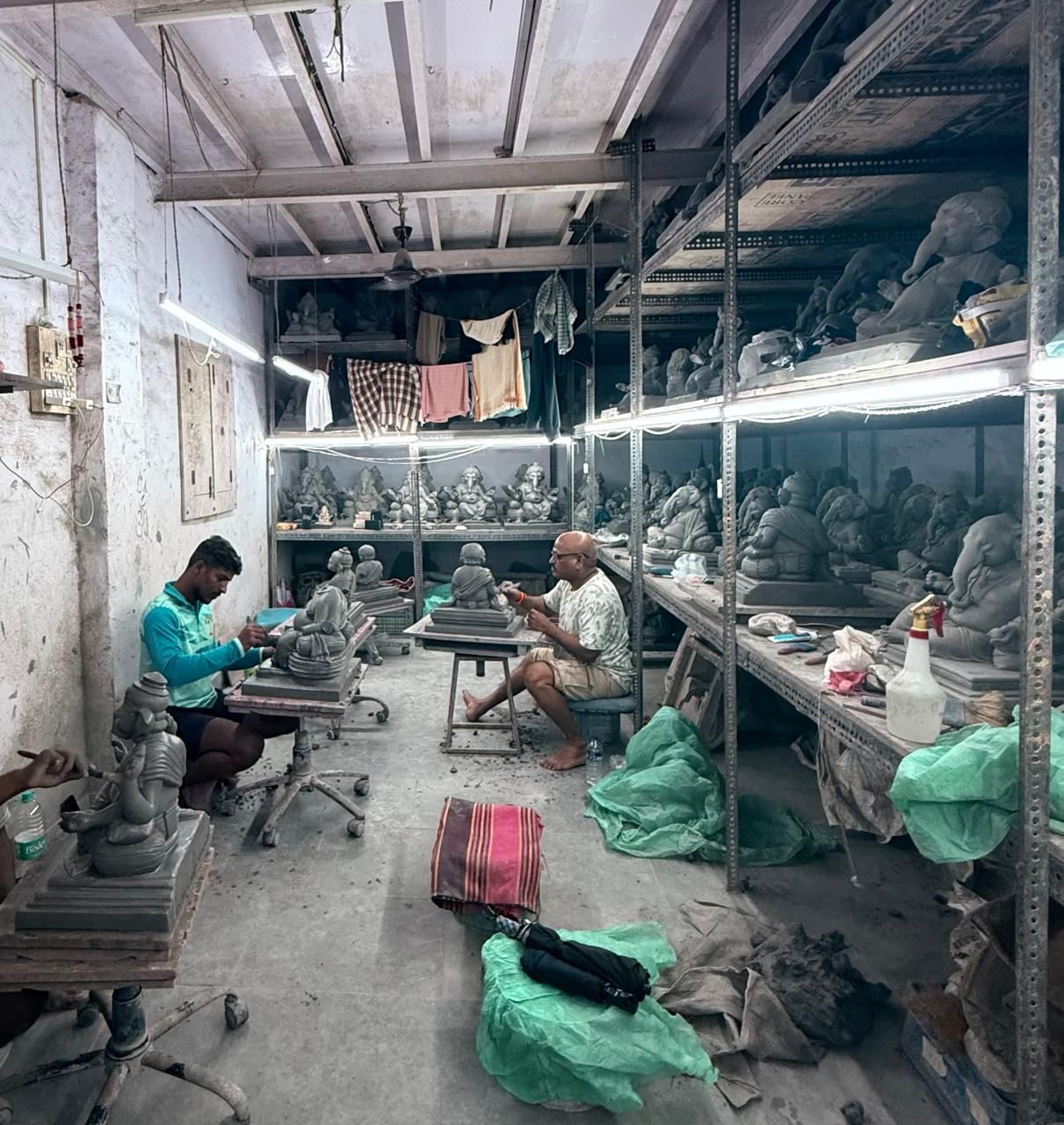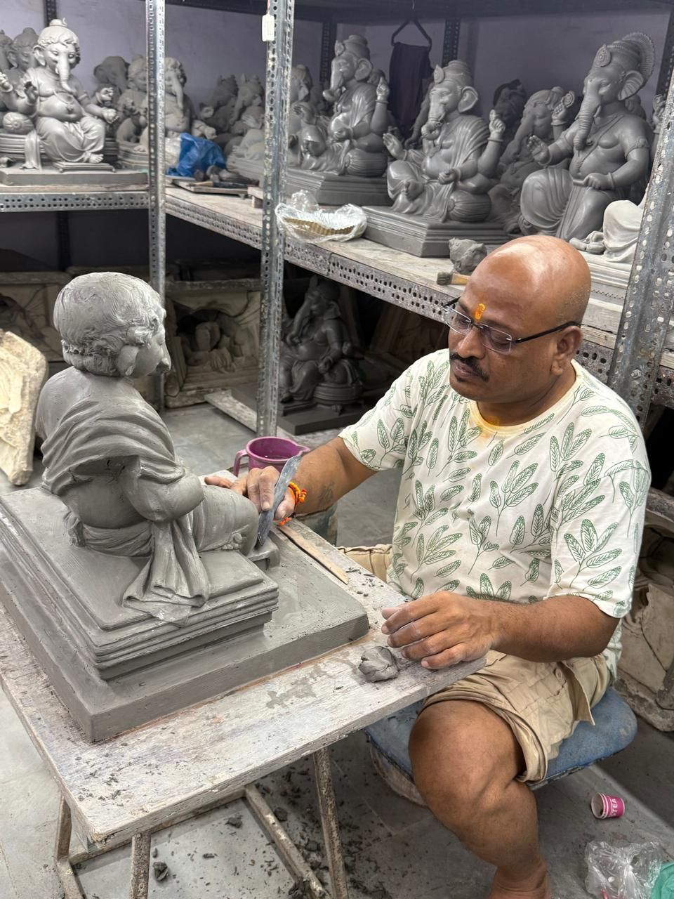 Tucked away in the quiet folds of Dharavi, a place often misrepresented by its scale and density, lies a sculptor’s studio. It is not just a workspace, but a world built around tradition, trust, and talent. At the centre of this world is Chetan Kamable, not a man of old age, but one of immense skill and quiet stature, and his student, Pradum, a soft-spoken sculptor with a creative hand.