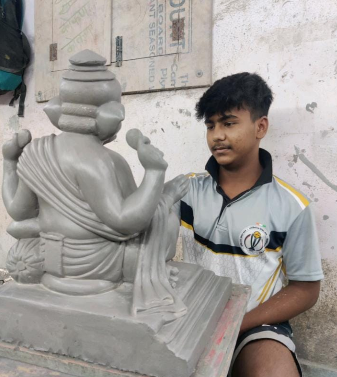Over time, he has become part of the fabric of the studio, not as an outsider, but as someone who now contributes to its rhythm. He is not just a student anymore. He is a sculptor in his own right, bridging the quiet patience of a learner with the confidence of someone who will carry this tradition forward. His bond with Chetan is one of both respect and mutual growth. As he told us, “You can ask whatever you want,” with a soft smile that hinted at both pride and comfort and innocent excitement in the space he now calls his own.
