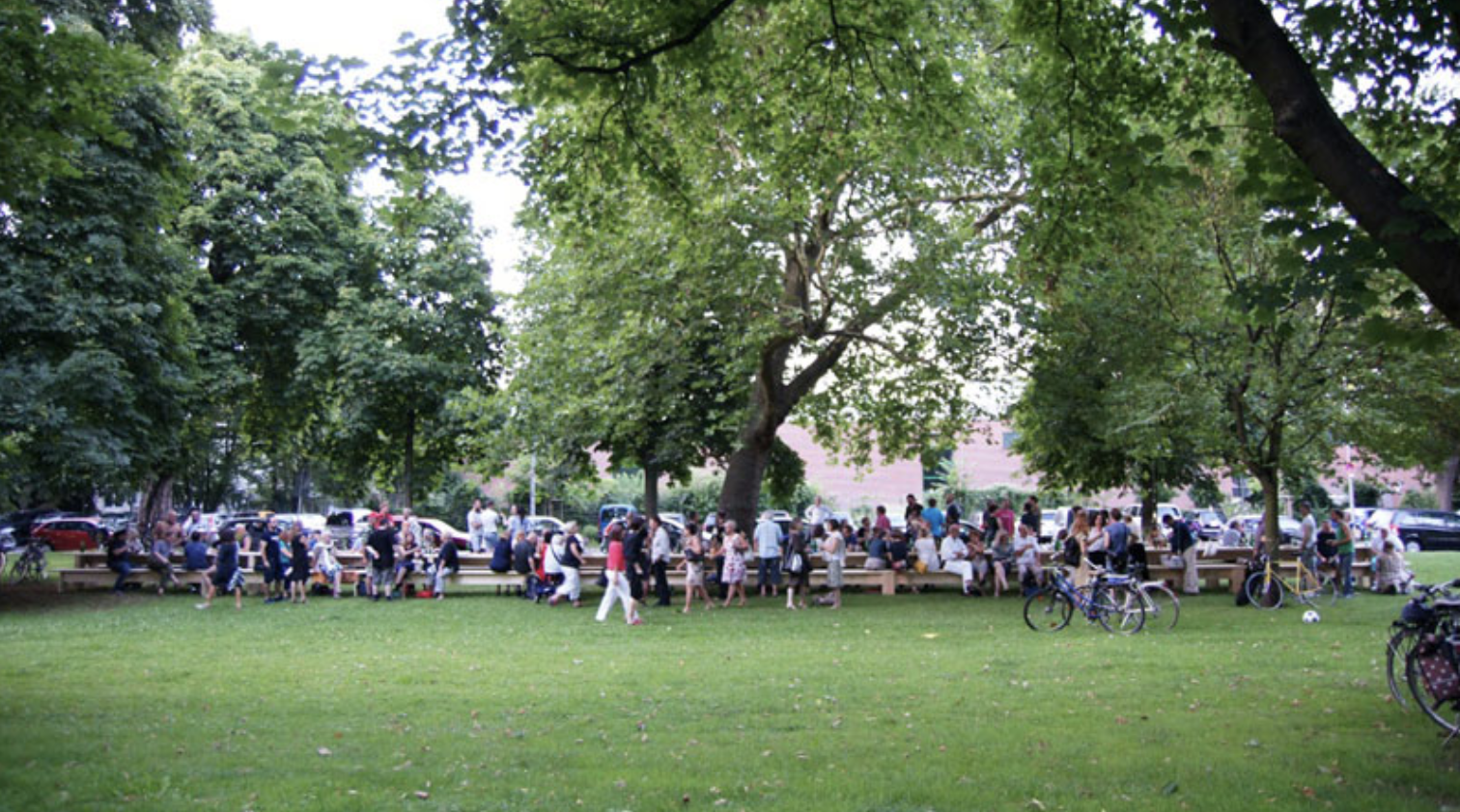 The artists describe the process of public appropriation, which was totally intended, take on many forms. A long table in an exposed piece of land, whose quaint length is a dramatic invitation to passers-by, does not merely remain that - it transforms into a public space provocation. It draws attention to a missed opportunity in Cologne: a residual - but generous - strip of grass by the street, with the potential to become a new community park.