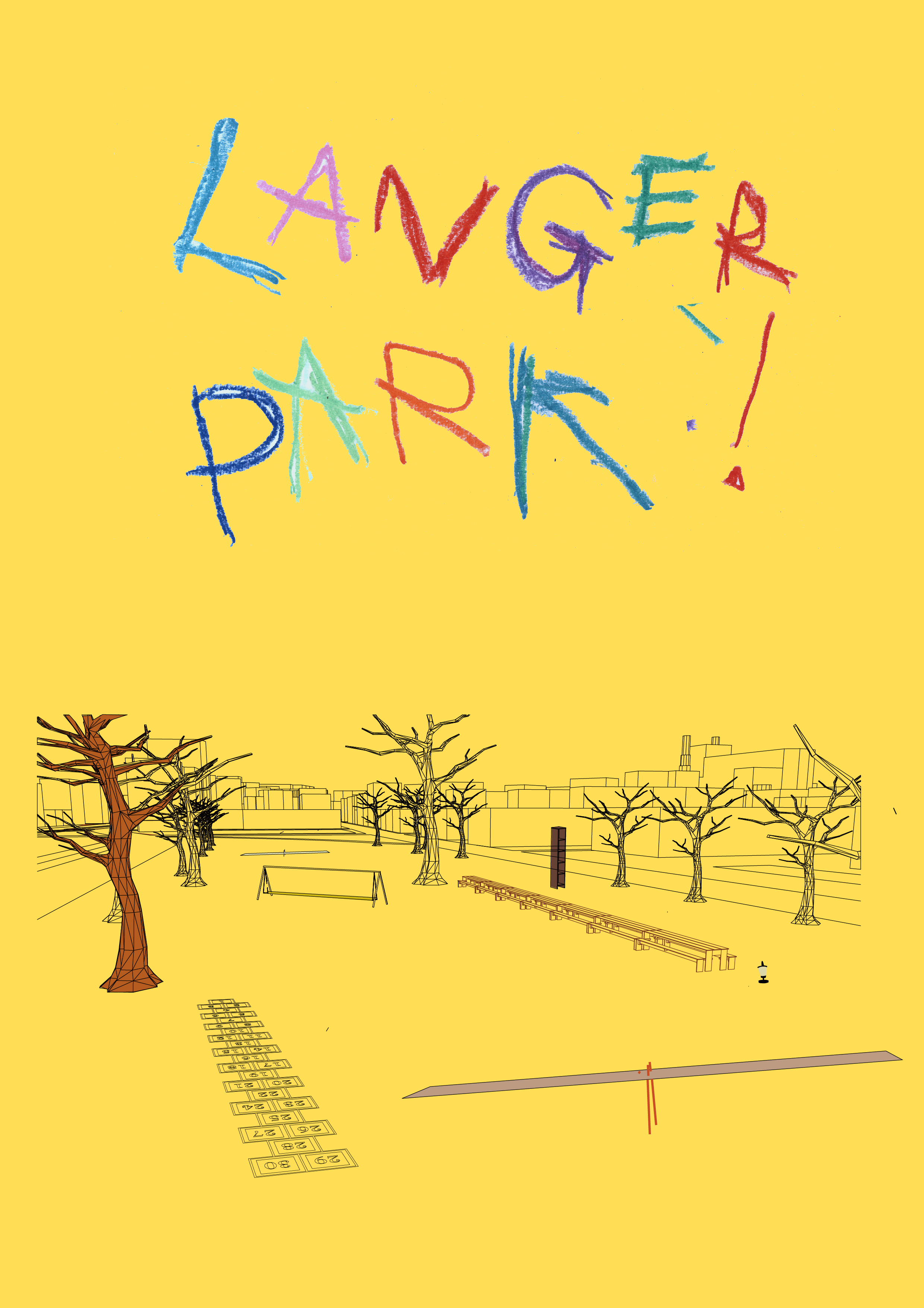 The students imagined Langer Park: a playful, fictional utopia for the place. In this park, everything would be extra-long, offering a unique concept that stands out not only in Cologne but in Europe as a whole. They implemented two key interventions: