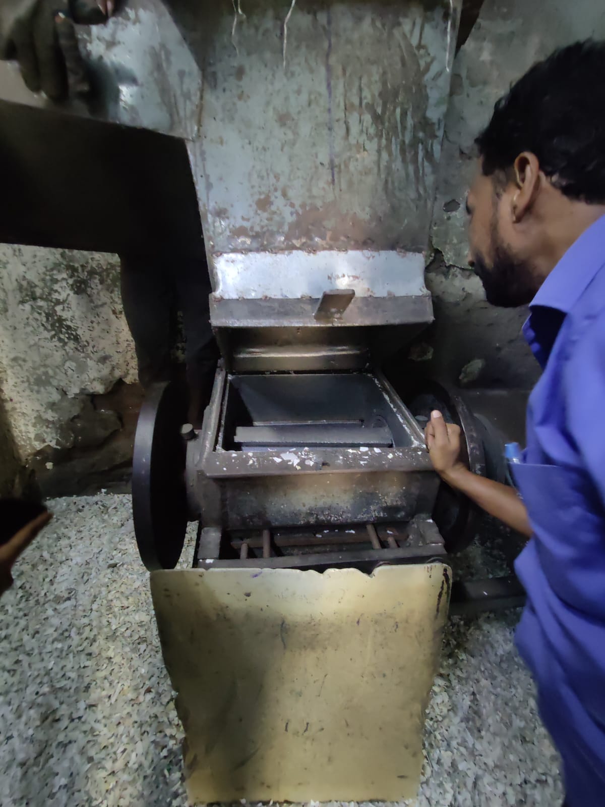 Back then, they would purchase unwashed plastic scraps, clean them in salt water, dry them on the terrace, and process them into uniform pellets, the most widely usable form of recycled plastic. Orders flowed in from places like Chennai and Pondicherry, drawn in part by their now-iconic signboard. Companies contacted them to recycle their plastic.