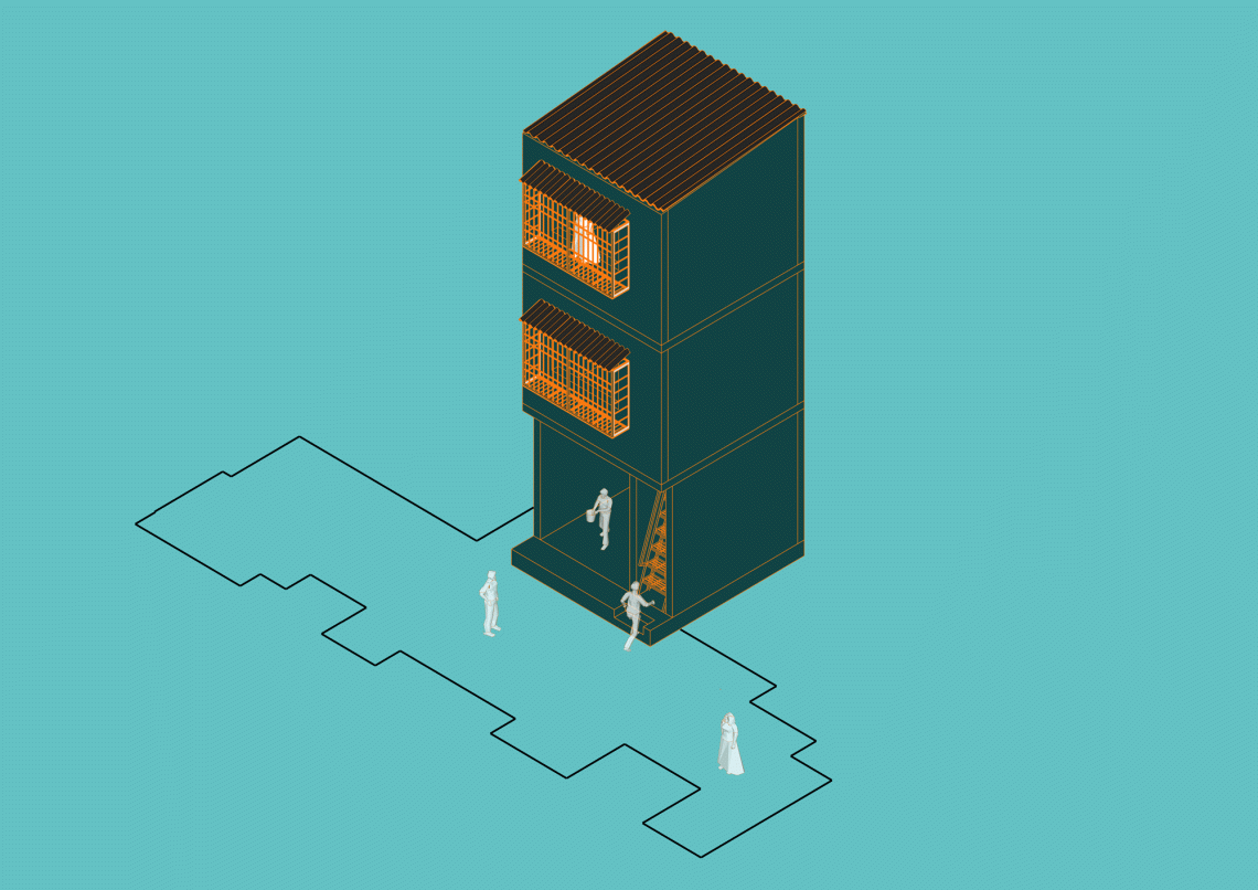 A convoy of mild steel staircases dots the dynamic gullies of Dharavi. As one of the most essential Homegrown elements, these staircases are a direct indication of the vertically incremental developments in this context. Primarily installed as an ‘add-on’ for the additionally constructed storey, these staircases have become a natural part of the street to guide one to ‘the way up.’