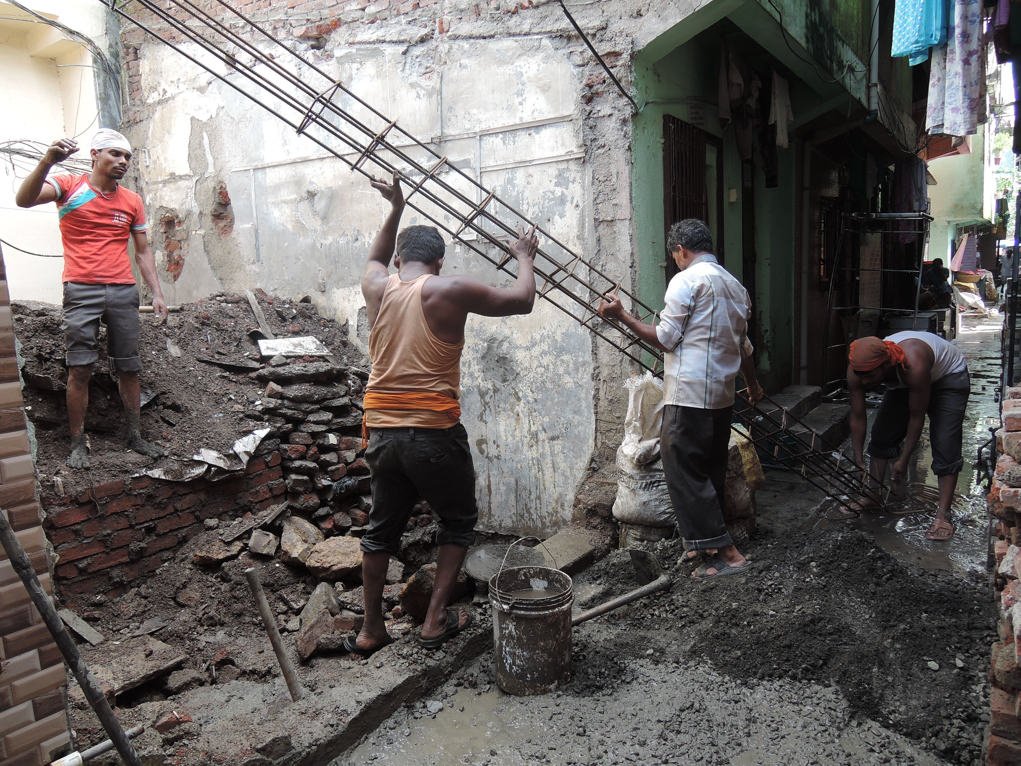 As URBZ has involved itself in local construction projects over the last couple of years, it immersed itself quite literally in the stuff that lies beneath, that makes up the foundations of all construction activity. This is a report prepared by Jai Bhadgaonkar and Giovanni Rapanna about how people in Shivaji Nagar manage to build homes that stand above a liquid underground.