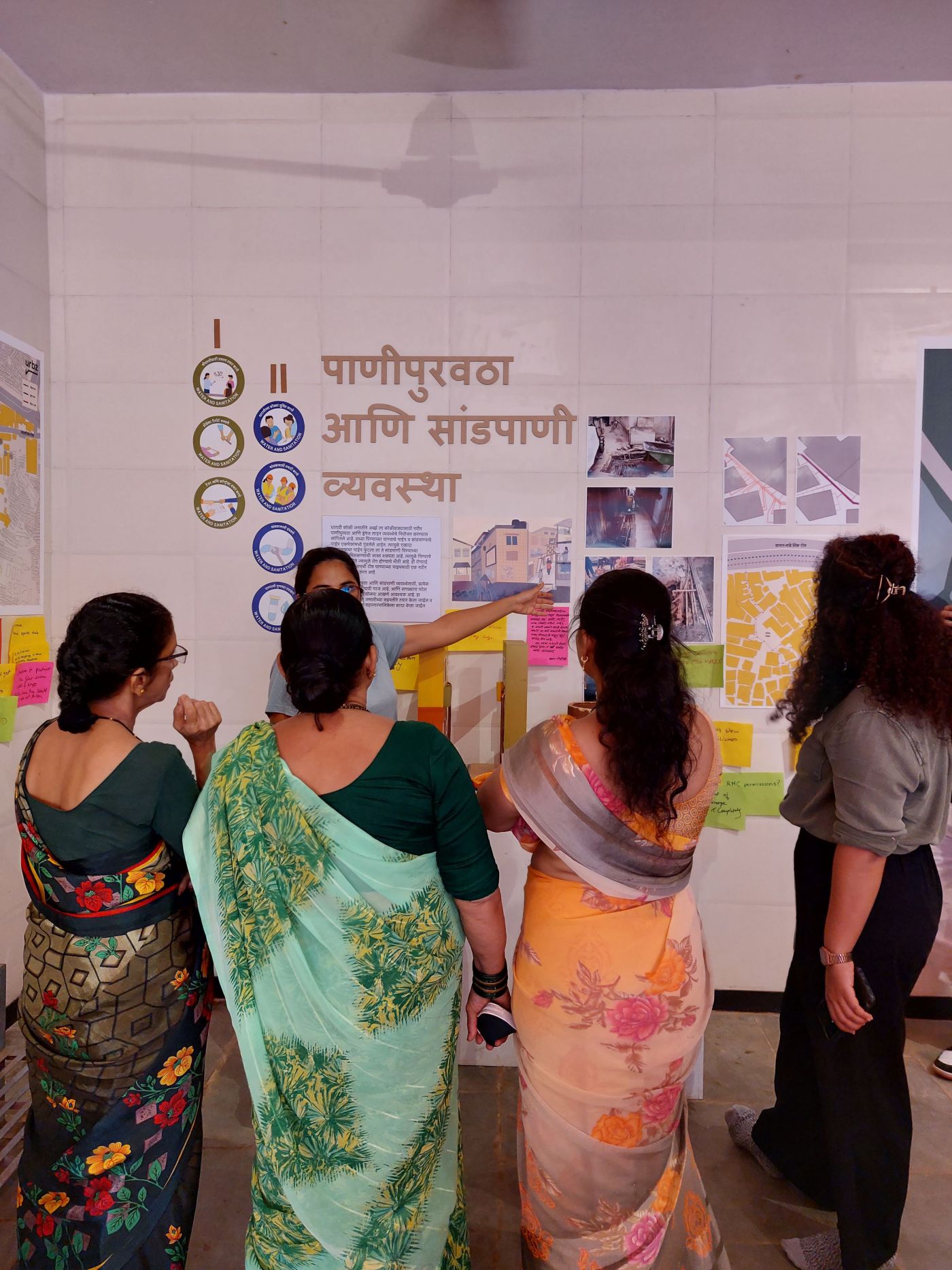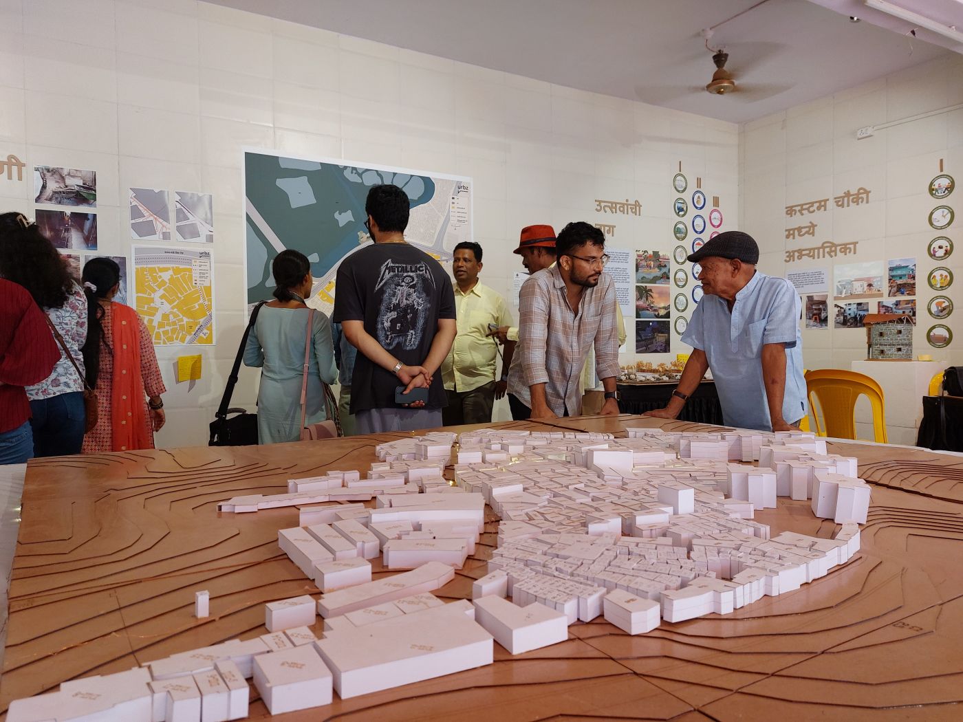 Exhibits showcased proposed solutions that addressed existing issues and needs. The Design proposals were presented through drawings and models. The residents got to learn about the projects and also got a chance to express their thoughts about them. The urbz team spoke with each of these 200 visitors, carefully explaining the projects and noting down all the feedback they had to give. We also interviewed many residents with specialised backgrounds, knowledge and experience. When larger groups visited, like the women’s self-help groups, we would gather for a spontaneous group discussion. These in-depth conversations helped validate the importance of the identified projects and yielded more information and knowledge about them.