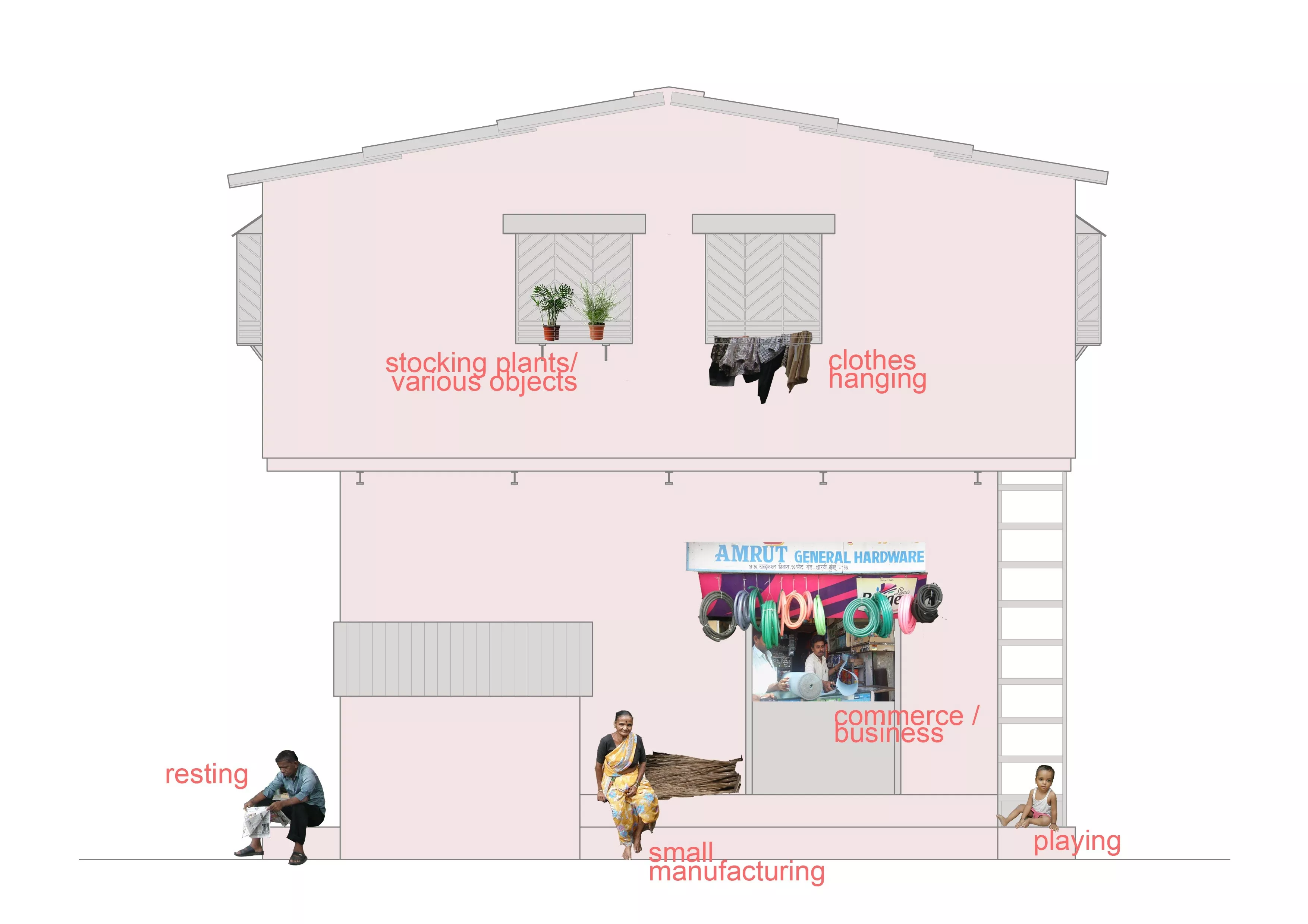 Of course, we are aware that our project would change the dynamics of the use of roofs: roofs are currently used as a refuge from the hyperactive streescape of Dharavi. Our project would strip them of this characteristic, as it most probably would happen that all the activities that are now cramped on street level would expand on the platforms and take them over. On one side, then, our project implies the loss of one fascinating aspect of Dharavi. On the other side, though, it also gives people the opportunity to shape that additional space themselves. In this way they are given the chance to use it as a refuge space if they want so, or to exploit it more thoroughly for economical reasons.
