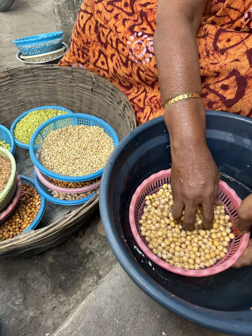 ‘You know that Shammi Kapoor song? Sometimes I just listen to that and think about my past…’ says Pushpa, as she hums away, staring longingly into the distance. ‘I was so boisterous growing up, always playing with the boys, causing trouble… My mother wouldn’t give me food for days sometimes,’ she adds, playfully chuckling like a little girl. I was sitting on the steps beside her basket full of pulses to sell, as she unveiled herself and her life to us as someone confident about having truly lived.