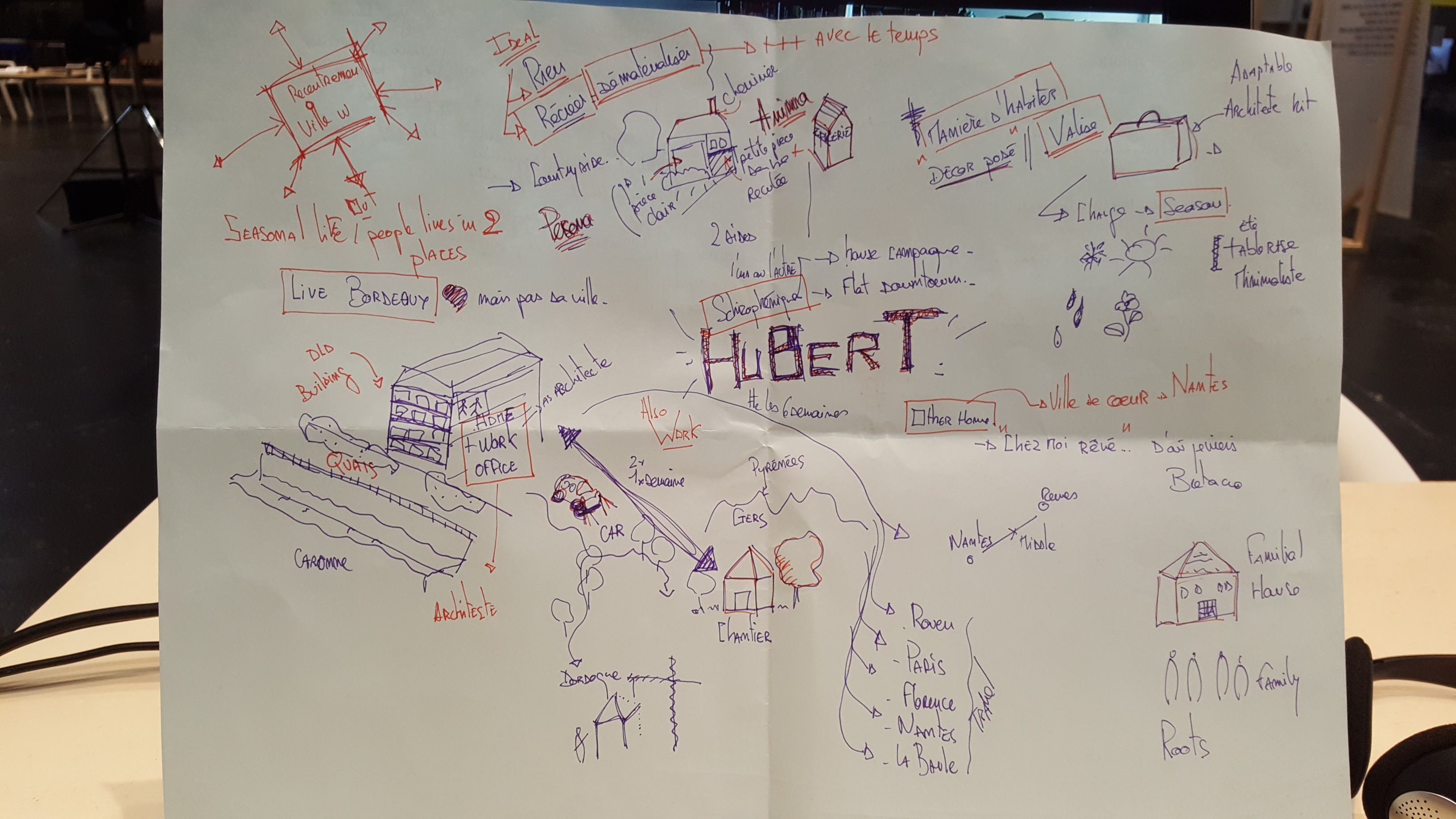 What would be your answer to ‘what’s home for you?’ Is it a place, a city, certain objects or an emotion? In a world where people are constantly migrating between the cities, towns and villages, the answer is not very evident. A person hails from a certain place, grew up in another, migrates towards job opportunities and may move again to follow dreams, leaving a trail of footprints across their personal circulatory life map. Little parts of each of these places make up the idea of ‘home’. At the constellation.s exhibition in Bordeaux, we tried to understand what ‘home’ meant to various visitors. The questions we asked them were ‘where do you live now?’, ‘where do you hail from?’, ‘what other places have you lived in?’ and ‘what is your ideal habitat?’. These questions take away from the idea that the house is synonymous with home. In an effort to investigate the relationship between the different spaces that the individual has occupied, we directed our questions to differentiate between the house, home, habitat and the ideal living condition.