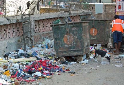 Waste is collected as much as possible on fixed locations. Often a small lot with three walls. Birds, goats, and dogs pick anything edible from and around containers. Textile residues from the fashion industry are used to fire the kilns of the potters.