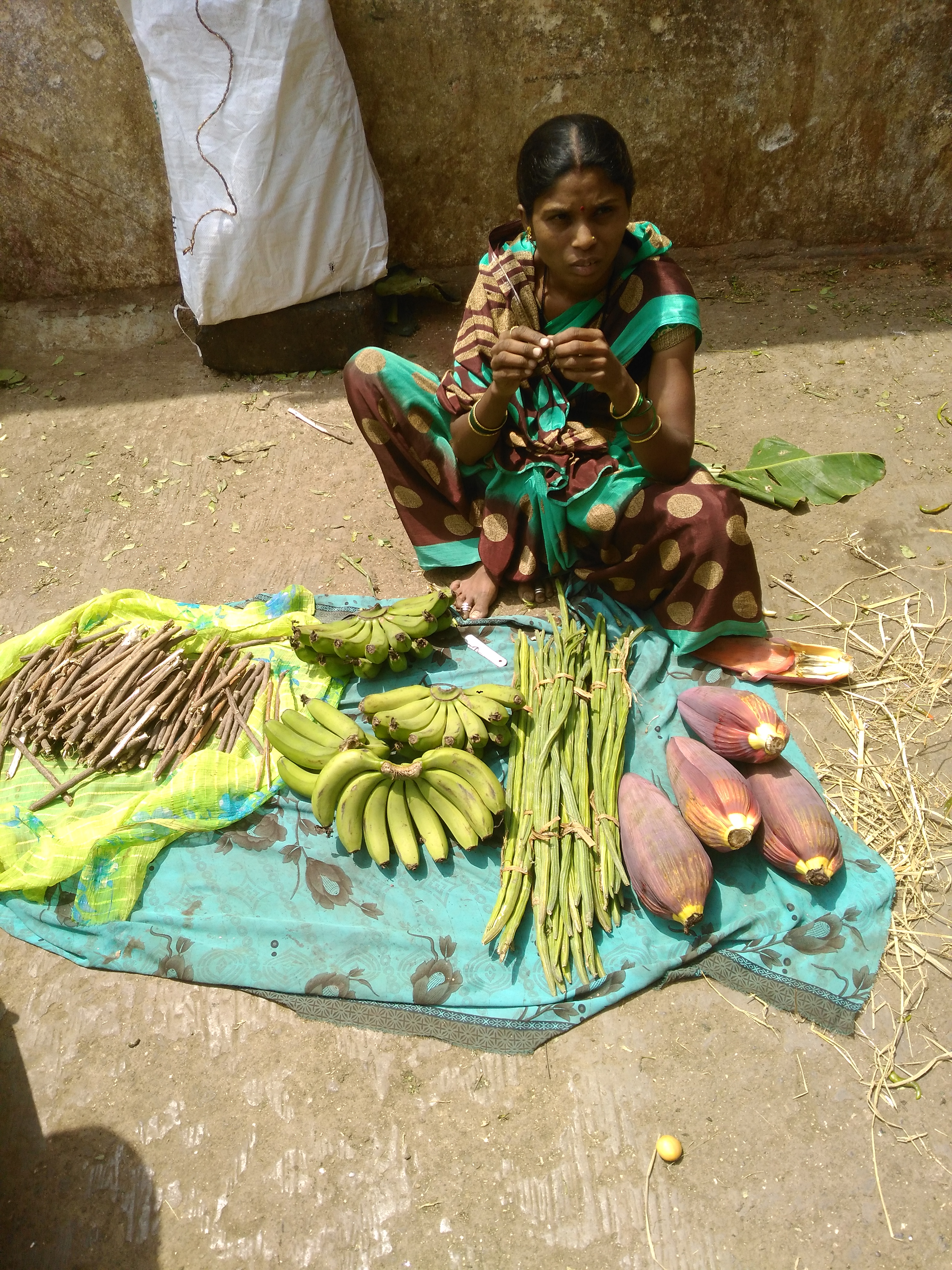 The first alternative brought in by Maharashtra government was delicensing of fruits and vegetables from the APMC act (allowing people to bypass the APMC market to sell their produce), following which an alternative markets to APMC, the Farmers-to-consumers markets, were established. This gave the farmers, esp. Small-scale farmers, the freedom to sell independently at markets and prevent exploitation. We met one such farmer, Sangeeta, in Dadar market (Krantisinha Nana Patil Mandai), who comes to Mumbai from Bhusawal (it is an 8 to 10 hours journey, one way, by train), every week to sell. This venture is only 2-3 months old. She, like many others, displays her produce on a piece of fabric, sitting on the side of the path that leads to the market building. Her husband sits at the back and she interacts and sells. Bananas, banana flowers, drumsticks and drumsticks flowers, and datun (the traditional, Indian teeth cleaning sticks; made of Neem) make up the total of her offerings. She earns Rs. 2000 per visit (minus the transportation cost). They chose this method of selling their product, because the low-quantity production is not enough to get transported; in her words ‘chota mota dhanda hai ghar chalane ke liye..truck mein bada samaan jata hai (it is a small business to run the family.. Trucks carry the bigger cargo)’. While the couple is away, her mother-in-law takes care of the children. Sangeeta has the freedom to bargain, and direct sale gives her the full price of the produce[1] while preventing her from exploitation by contractors. On the other hand, she has to bear the travel costs, find ways of ensuring her children’s safety, and probably struggle for her space on the street.