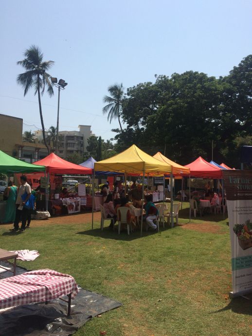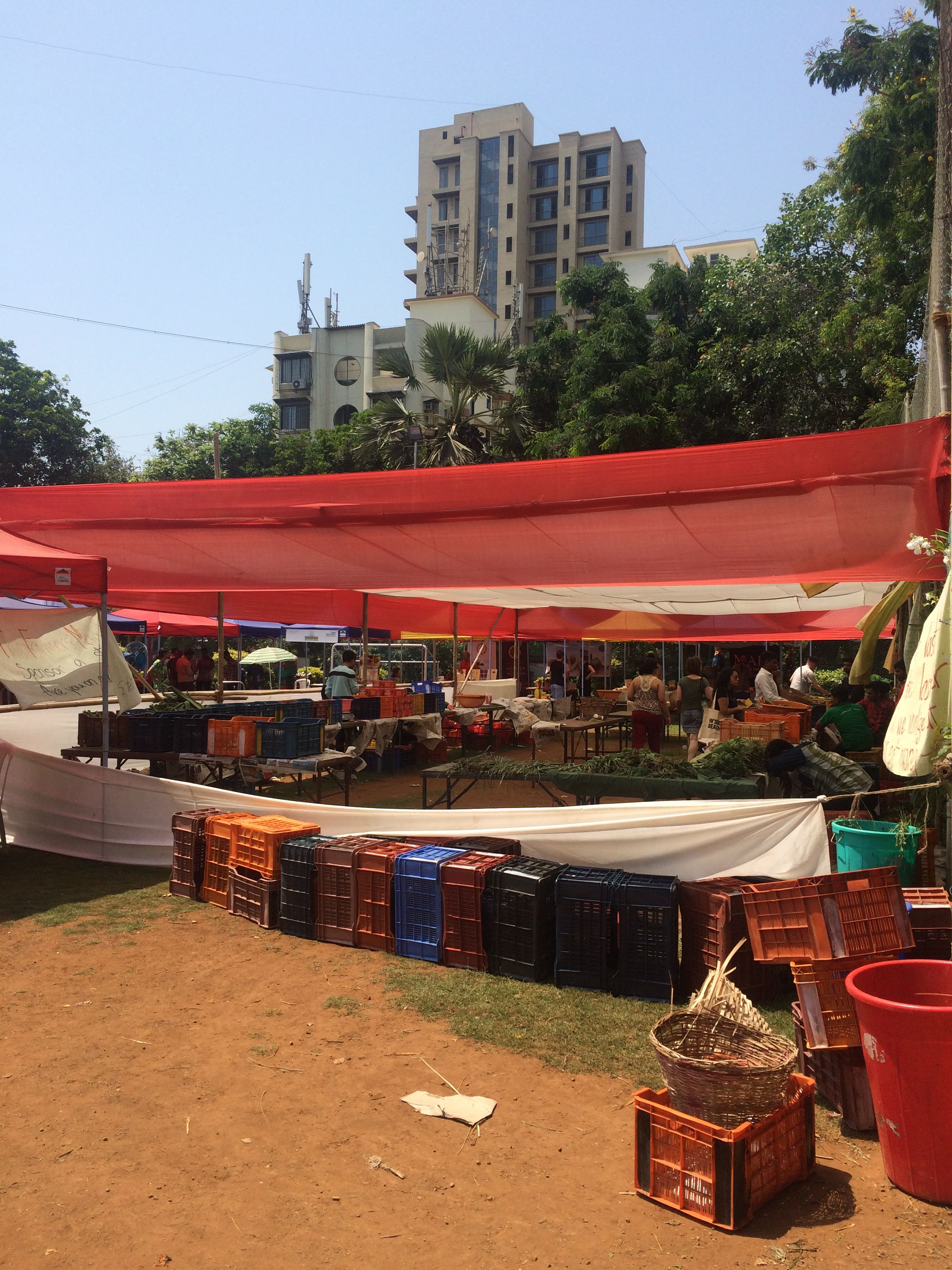 The third alternative we encountered is a result of the new and rising drive of organic markets and urban farming projects. It is a weekly organic market (on Sunday) called Farmer’s market, at Demonte Park, in Bandra where only organic produce is sold. The credit, for the creation of this market, goes to the efforts of one individual: Kavita Mukhi[3]. Part of the Bandra grid urban fabric, a dozen of stalls sell products from private organic farms and small-scale processed food industries. Bandra is mostly an upper-class residential district therefore, the consumer/customer base of this market is mostly the rich and affluent, and not representative of the population of Mumbai. The high prices of the produce are unaffordable to the general populace. The Farmer’s market is a closely-knit community with most of them knowing each other and having regular clients.