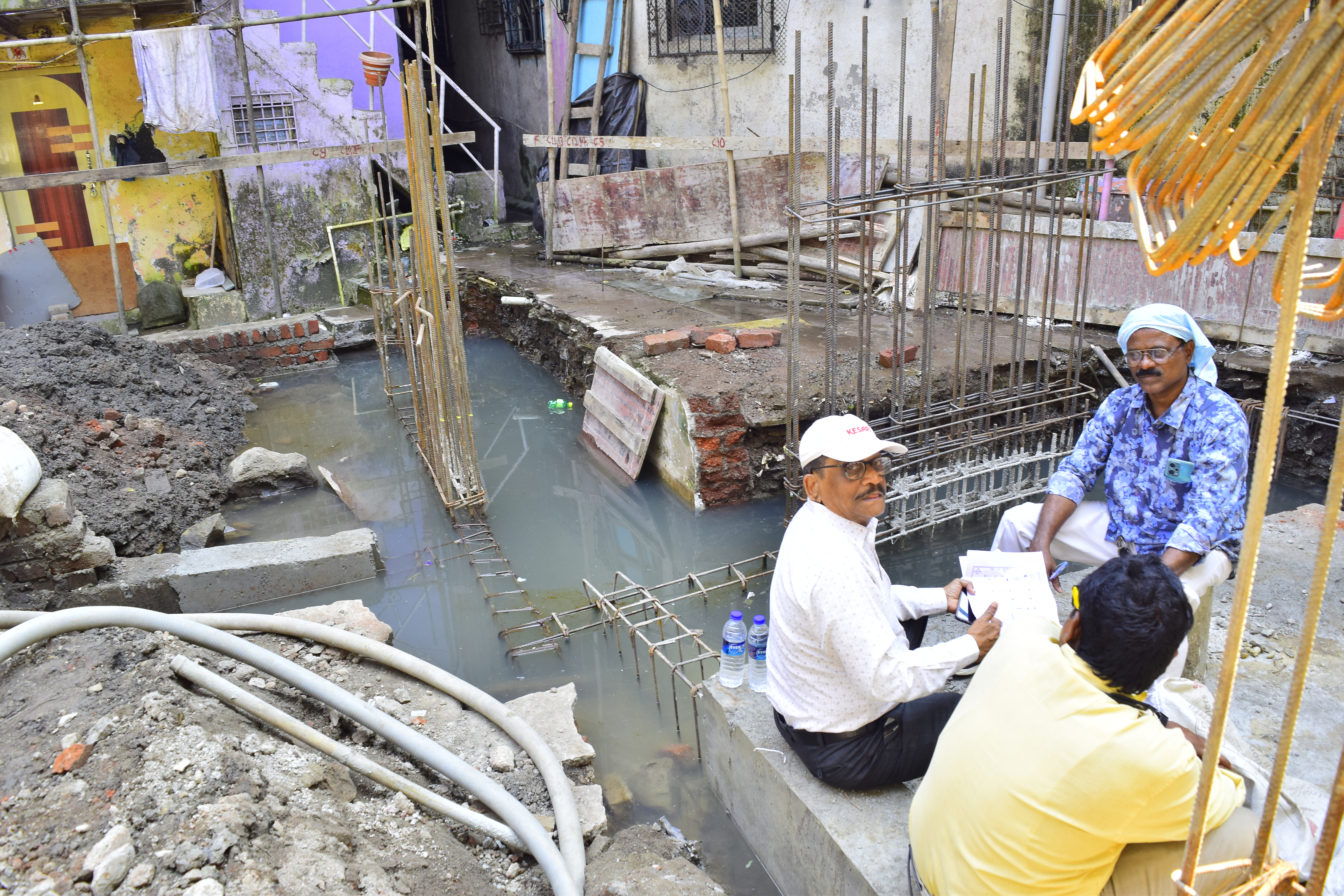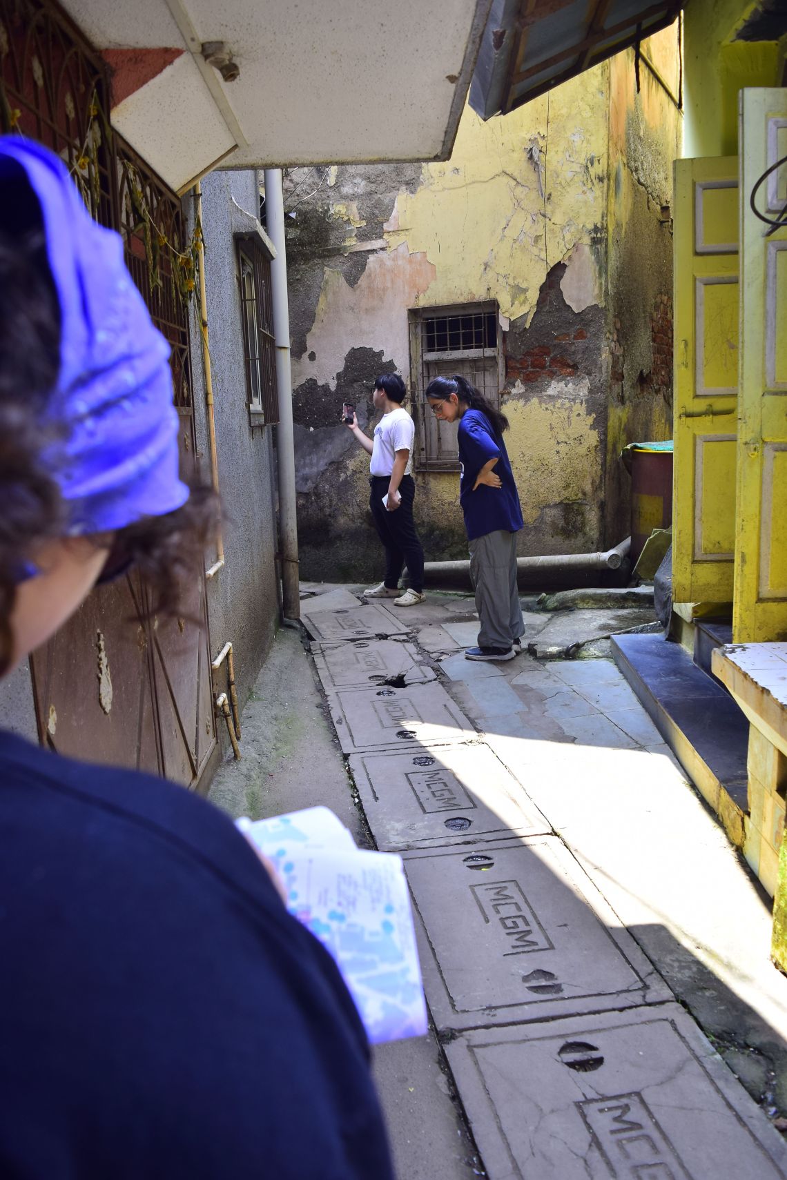 A meeting with the Dharavi Koli Jamat helped the group focus their attention on a smaller but relevant need that they could address without buy-in and investment from the municipality - a solution for the crumbling pedestrian infrastructure. The paths through the village are essentially all pedestrian and inseparable from the network of pipes and drains. Many drains also function as footpaths.