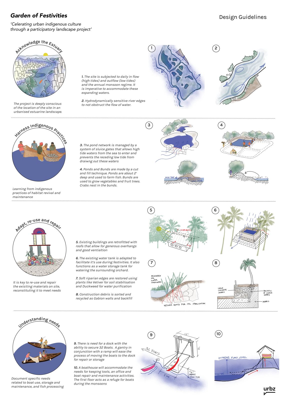 With the support of the re:arc institute, urbz has been co-designing an intervention within this novel urban ecosystem— a shared habitat in a mangrove forest surviving in a dense and concretised city. ‘The Garden of Festivities’ is a project that attempts to unite livelihood concerns with an ecological imagination that grows from the Kolis collective, ancestral knowledge and expertise. The first step of the project is a participatory landscape intervention on the last remaining commons within a habitat they are struggling to preserve.