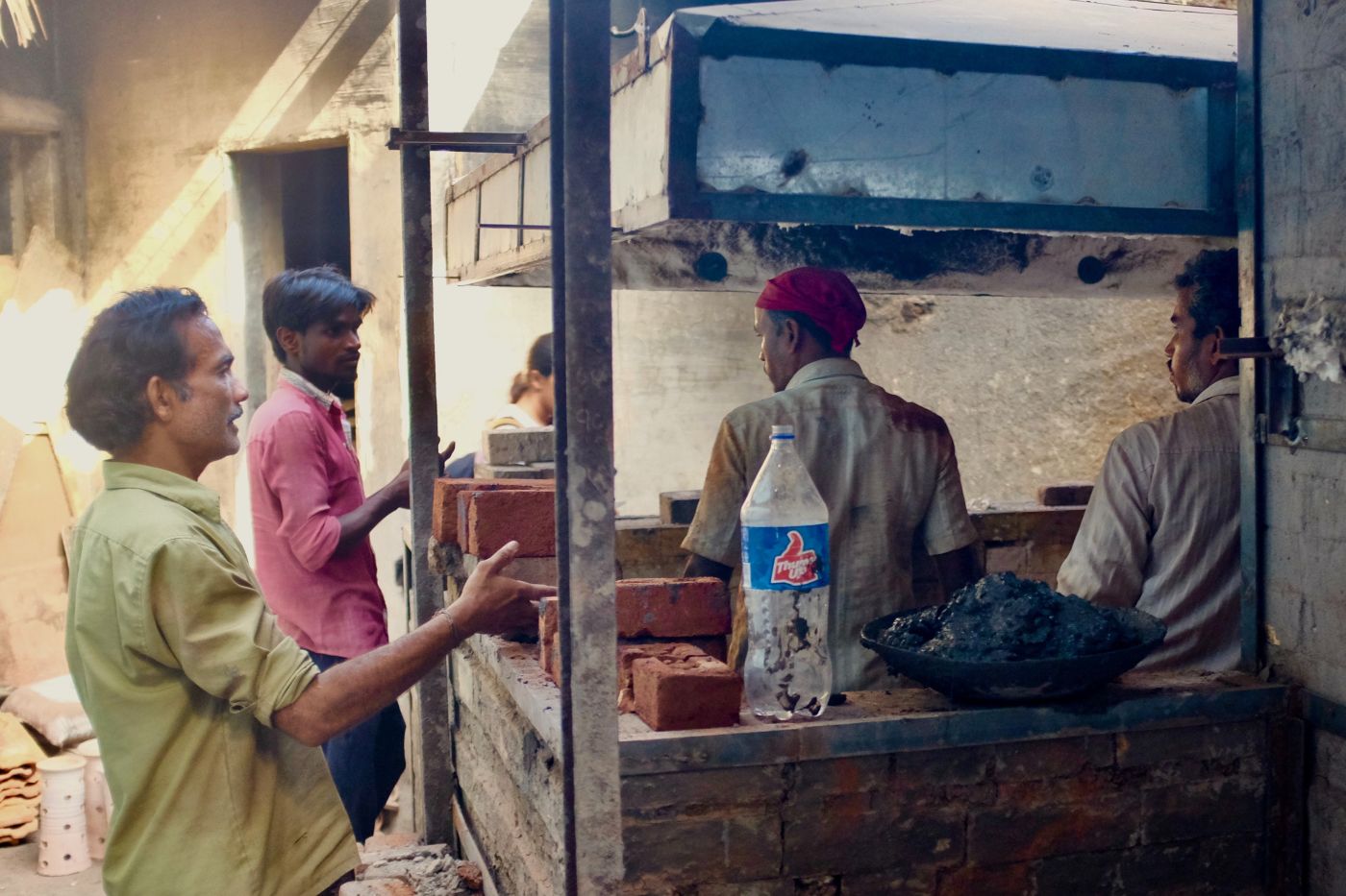 So, thinking of the lessons of Patrick Geddes, how can the area’s innovation be harnessed so that these new kilns can be optimised? In the four months since new kilns have arrived in Kumbharwada, it seems like many steps have been taken towards ensuring they fire properly – people are experimenting with how to stack pots within them, how to better circulate the heat, and how to ensure they stay running for a long time. For example, Ranchod explained to us that he's planning on redirecting the flue in his furnace to point downwards (it currently faces up) so that the hot air can circulate more evenly within his kiln.