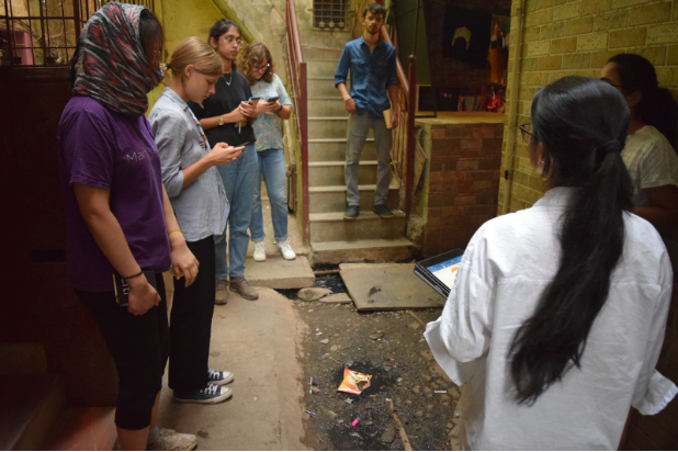 Some projects are infrastructural while others are public space interventions. The students helped with four projects that the urbz team has been working on - the upgradation of water and sanitation infrastructure, solar energy to power street lamps, activating community land along the Mithi River and the adaptive reconstruction of a customs house. The customs house is a dilapidated colonial structure within the Koliwada that the Koli Jamat wants to rebuild as a study space for students and a small museum which displays the history of the Kolis.