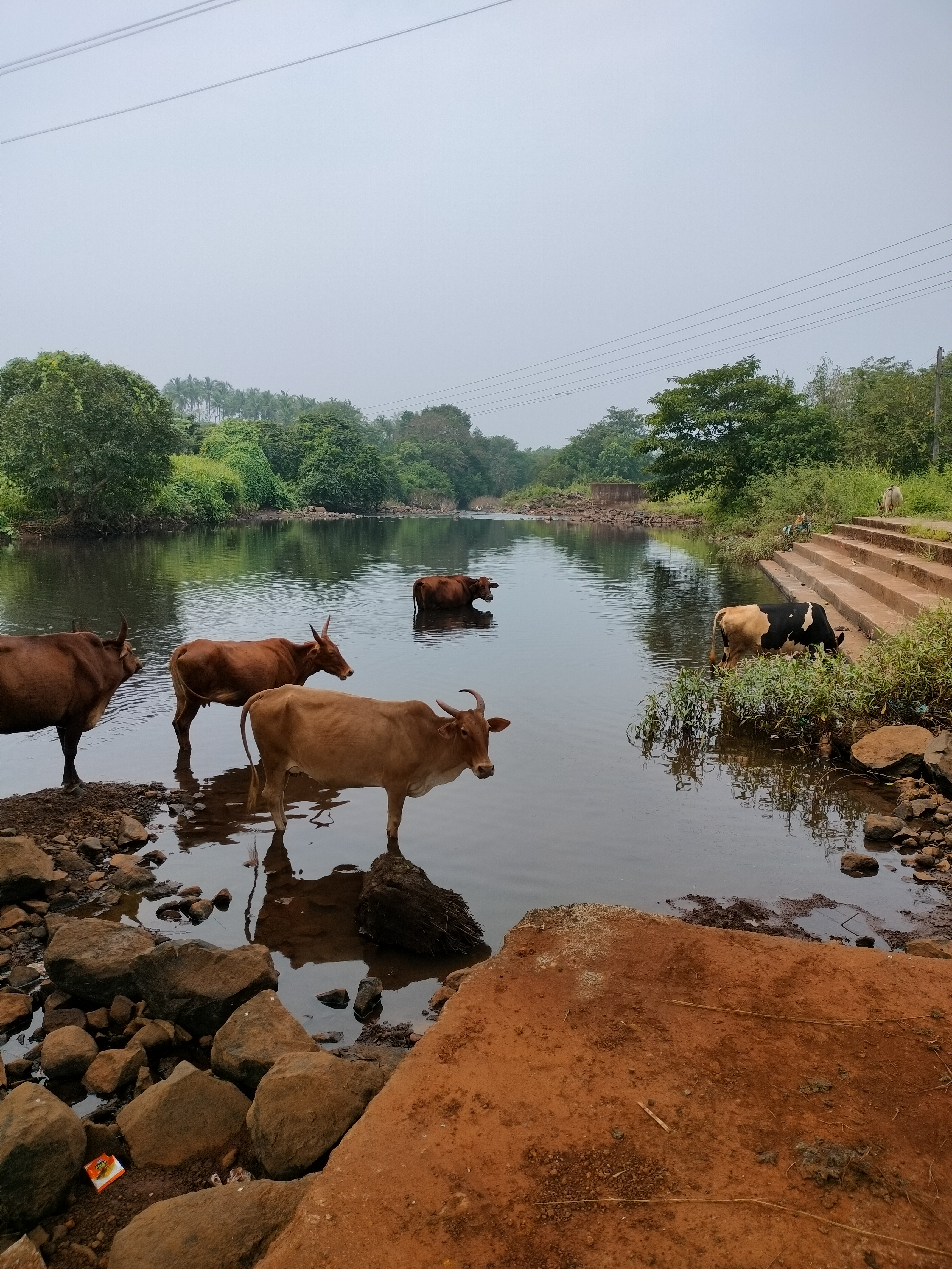 We recently travelled 240 km from Mumbai to Chiplun by train and then onward by local bus to reach Sawarde, a small village along the banks of the Kaapsi River. Our friends from Dharavi have some land here which they intend to cultivate into a lush riparian farm stay. We have been hired to help with the program and design. We like to immerse ourselves in the places we work, and this was the first dip. We spent a few days in Sawarde, where we talked to people, walked through the countryside, attended Navratri Puja in the village temple and ended each day with hot rice bhakris (unleavened rice bread) and tiny river fish, locally called Chiknya.