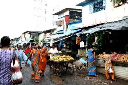 A row of trees along New Transit Camp planted by one of the residents.(left) Greenery brightening a street of Dharavi(right)