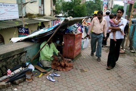 Such a simple design feature as an overhang or porch roof over the front door can make a huge difference.  You barely see a self built house in Dharavi without an overhang over the ground floor or a small porch roof over the front door, and all along the street are makeshift covers where one has not been incorporated.  It provides protection from the sun and the rain to make a day outside in the elements easier to bear, or simply a sheltered place to sit and watch the world go by.