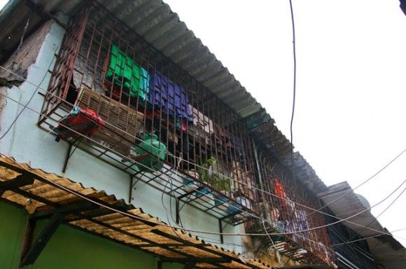One of the first things I noticed around Mumbai was the bars on a lot of the windows.  To me these conjure up images of high security against the fearful outside world.  But in fact they offer an extended living space, a place to dry clothes in an apartment lacking outdoor space, or a windowsill to keep plants on to offer a speck of greenery.  A look at a row of houses like this offers a glimpse into the lives of its inhabitants.