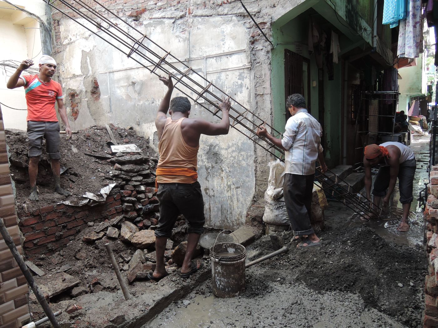 In Shivaji Nagar, there is a particular history of layering of the subsurface on the ground. Originally the top layer of surface was swampland and soft soil. Over a period of time layers of trash and debris got compressed through habitation. The Municipal Corporation placed a harder layer of debris or stones, bricks and other materials to create a segment on top of the surface, which started to act as the ground. However this subsurface is still constituted by soft and unstable material, thanks to the high water table in the area, making for unstable foundations.